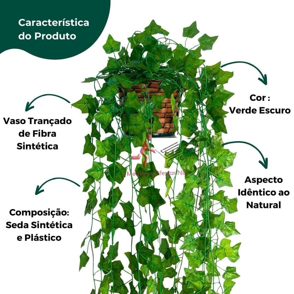 Vaso trançado + 3 Planta Pendurada Verde Artificial Bambu Parede Varanda
