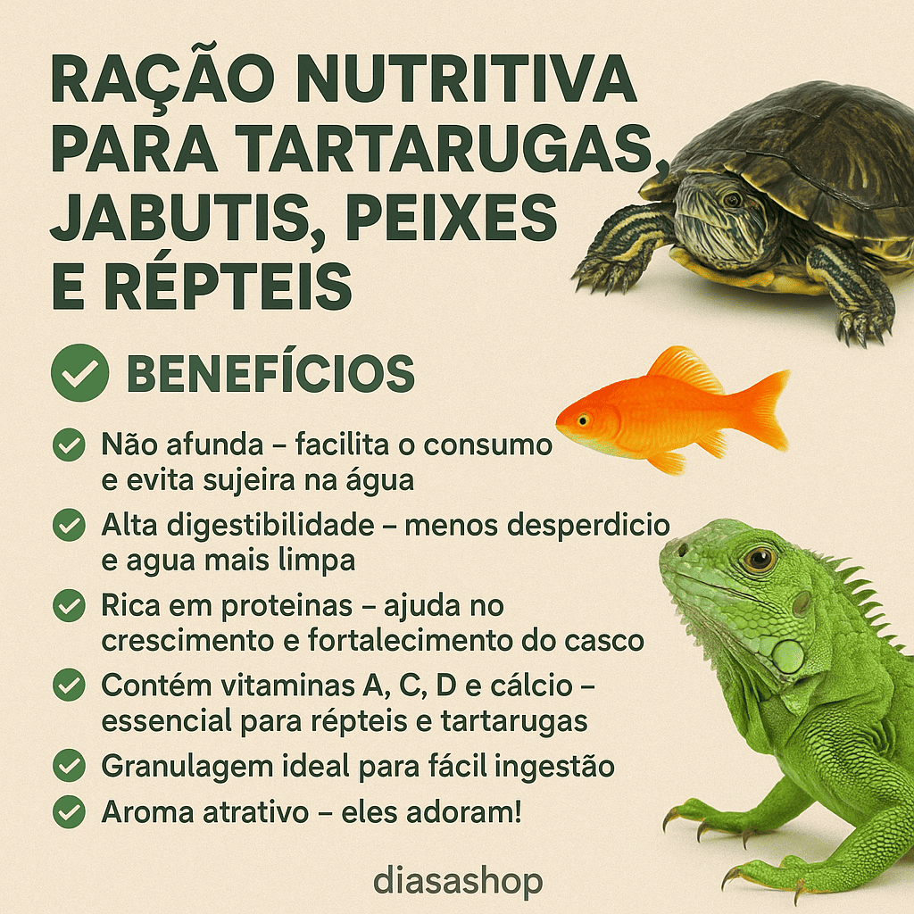Ração Nutritiva Premium para Tartarugas, Jabutis e Répteis