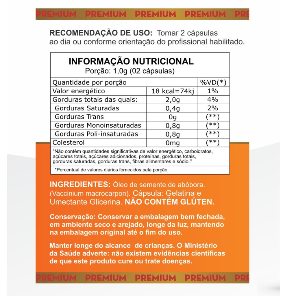 Óleo de Semente de Abóboras 500mg - 100% Puro - Original - 120cps