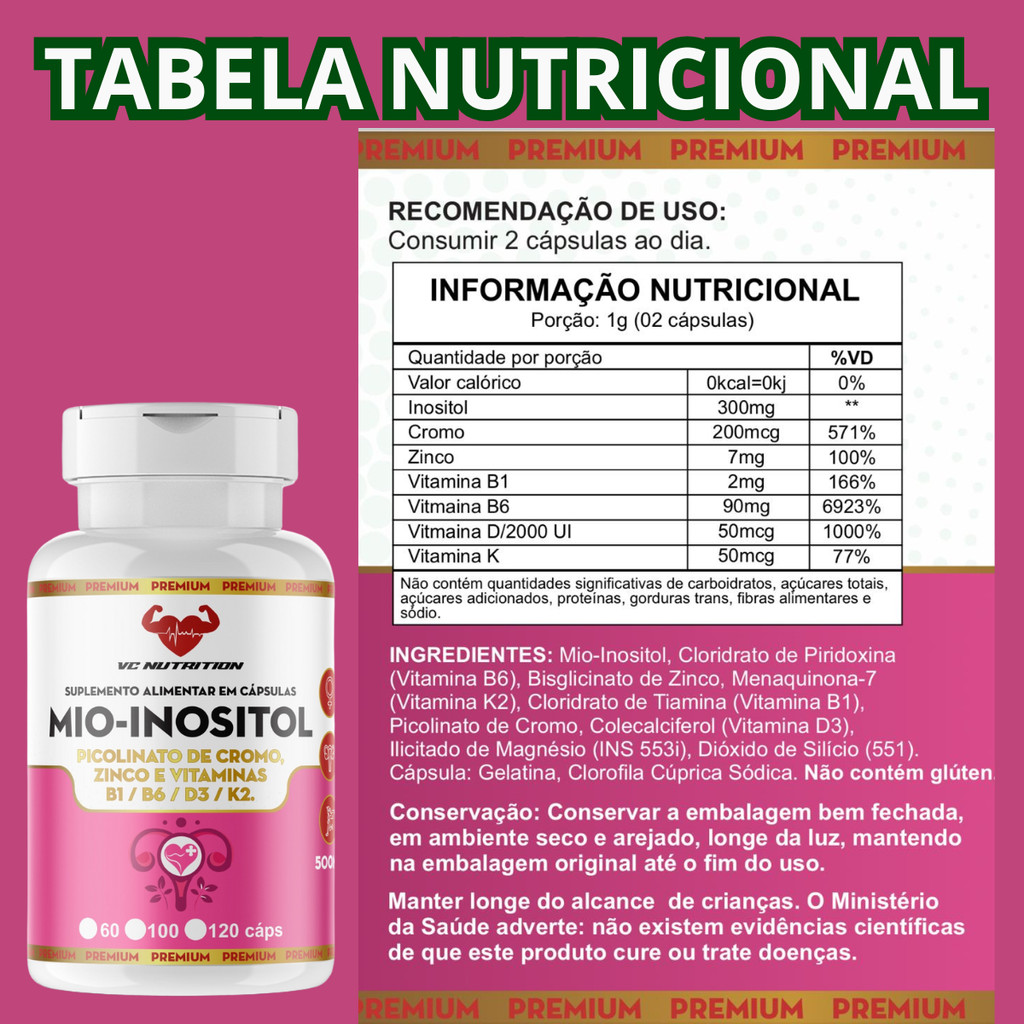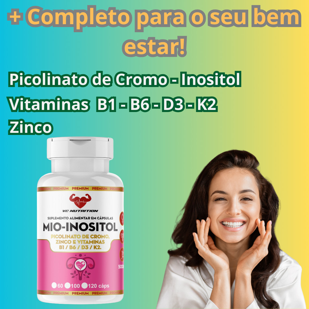 Mio Inositol com Picolinato de Cromo Zinco e Vitaminas B+D3 K2 120 Cáps
