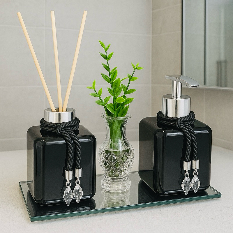 Kit Lavabo Pet Vasinho Com Flor Bandeja Aromatizador e Saboneteira Luxo