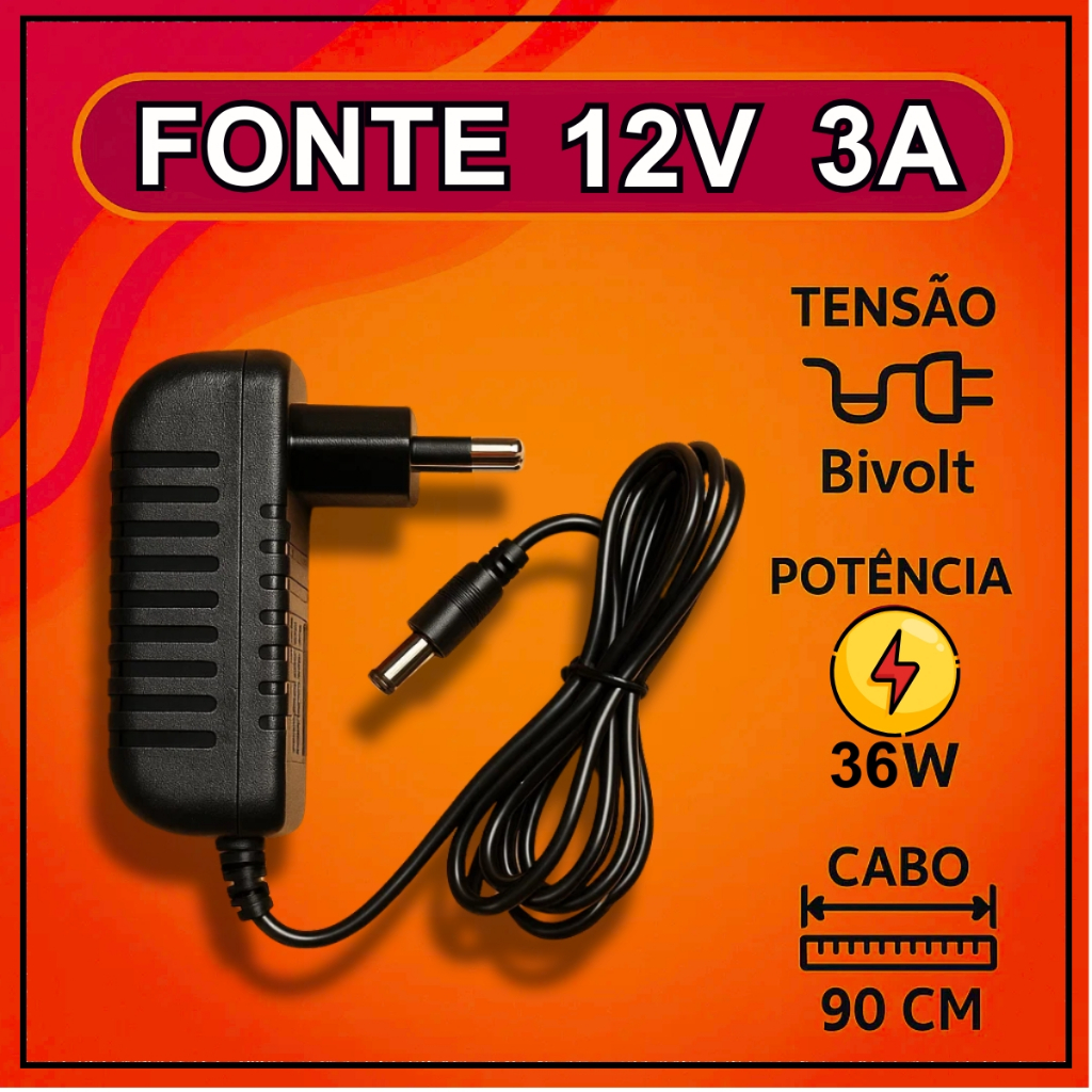 Fonte Alimentação 12V 2A 3A 5A 10A Bivolt Conector P4