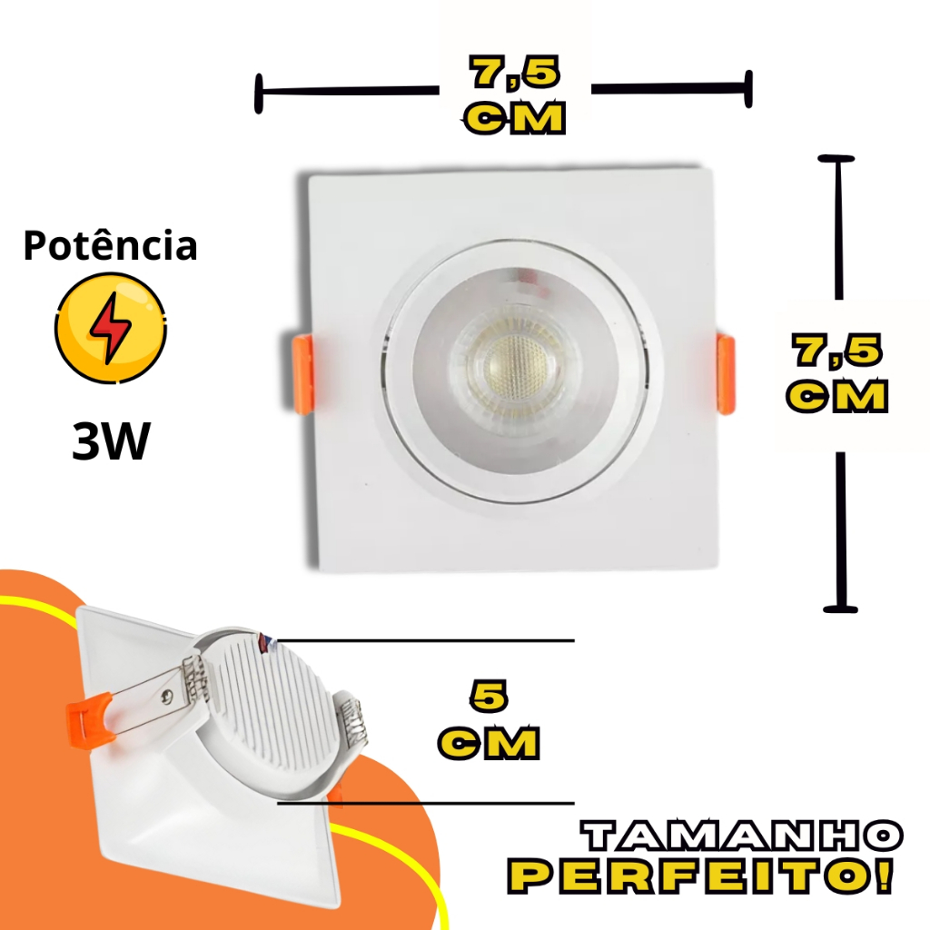 Spot de Embutir Quadrado e Redondo 3W e 5W LED Iluminação Decorativa e Economica