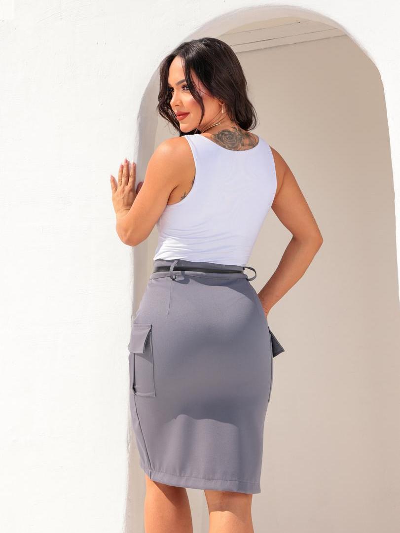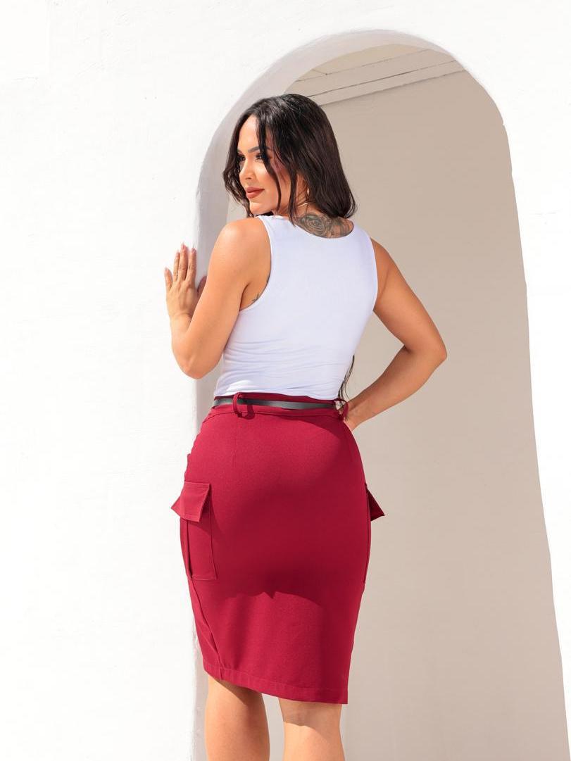 saia midi feminina alfaiataria cargo moda evangelica
