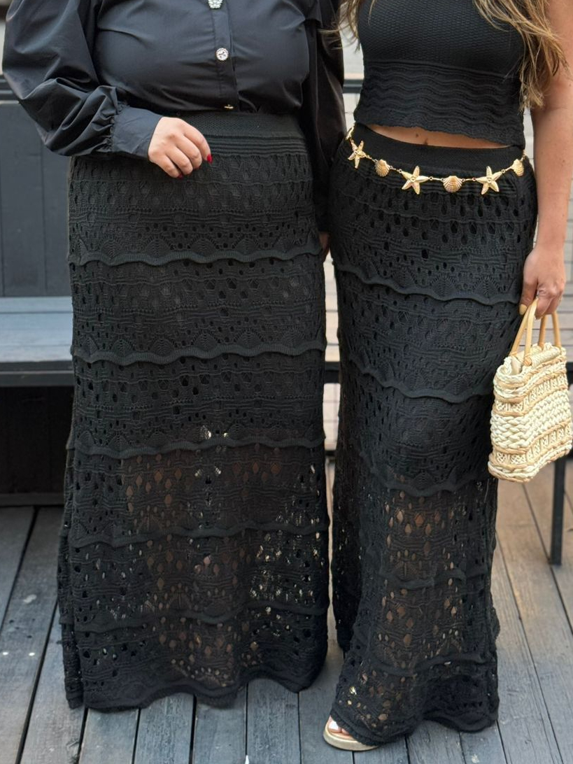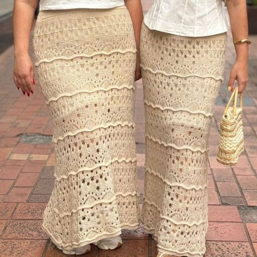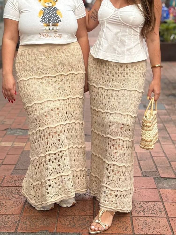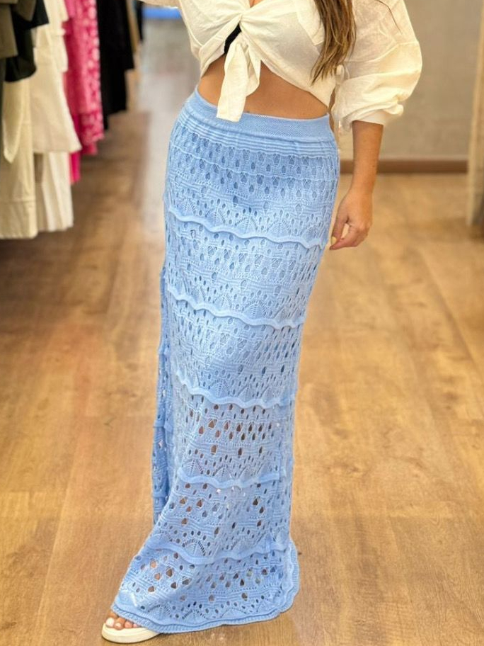 Saia Longa Feminina Tricot Ponto Crochê Confortavél Estilosa Tendência WM Malhas Moda Plus Size