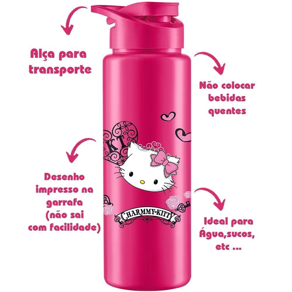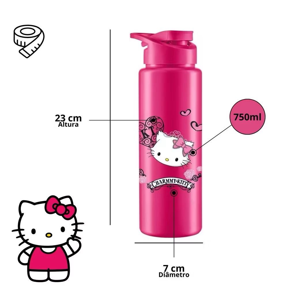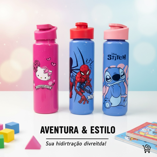 Garrafa de Agua Hello Kitty Stitch ou Homem Aranha 700 ml Livre BPA Infantil Escola e Passeio