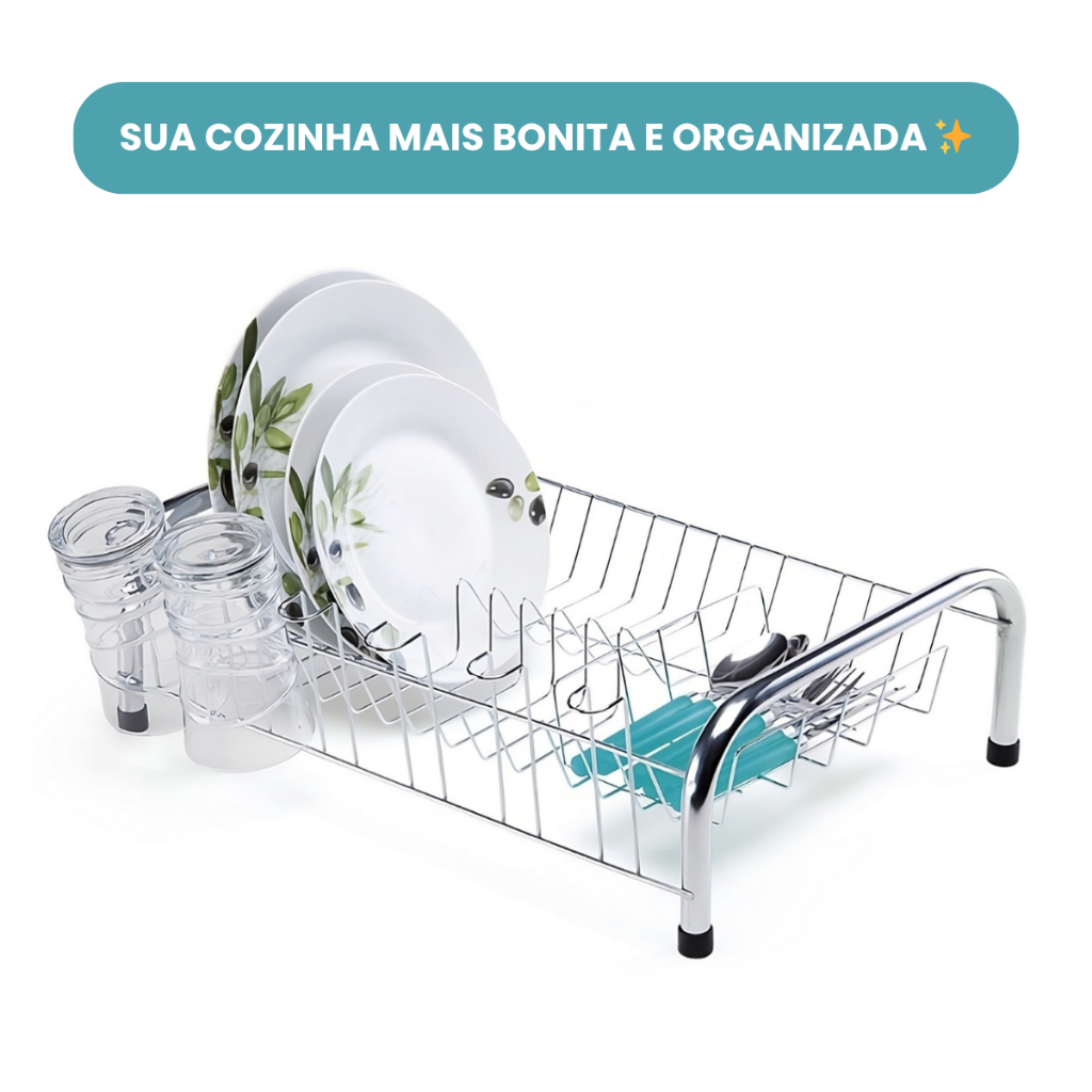 Escorredor De Louça Cozinha Grande Cromado Com Porta Copos
