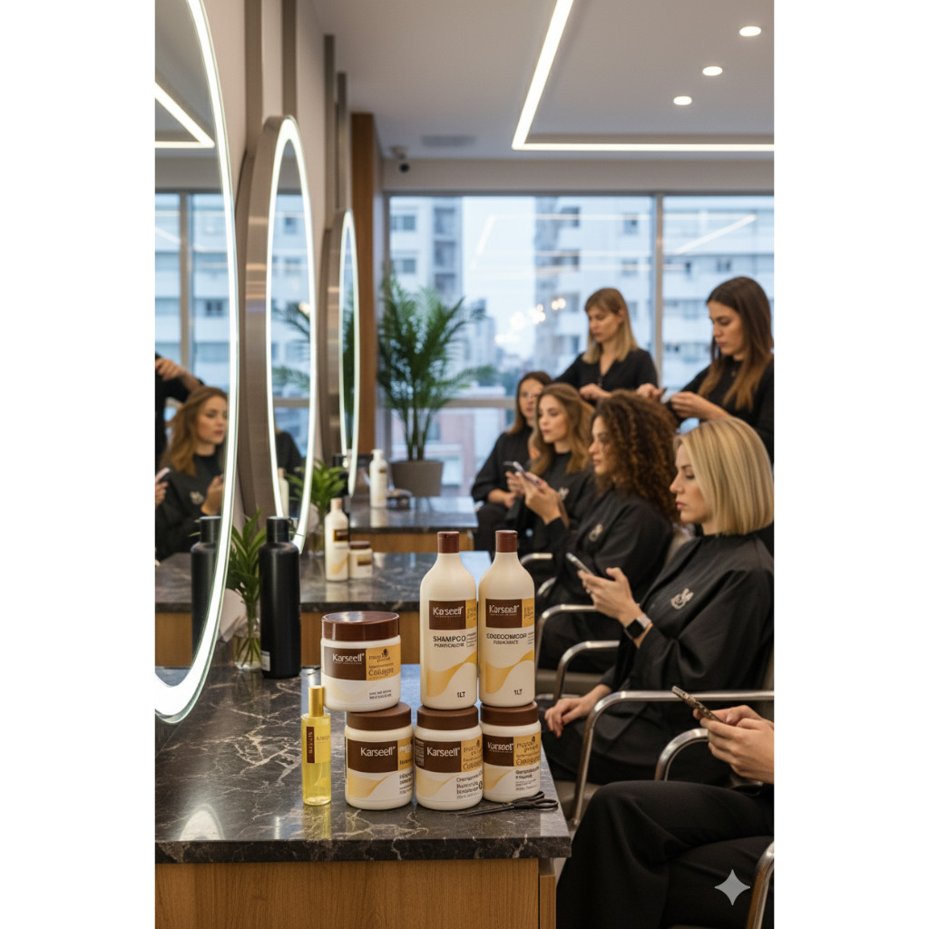 Kit Karseell Completo com 7 Produtos – Cronograma Capilar + Máscara 500g, Shampoo 1L, Condicionador 1L e Reparador 50ml