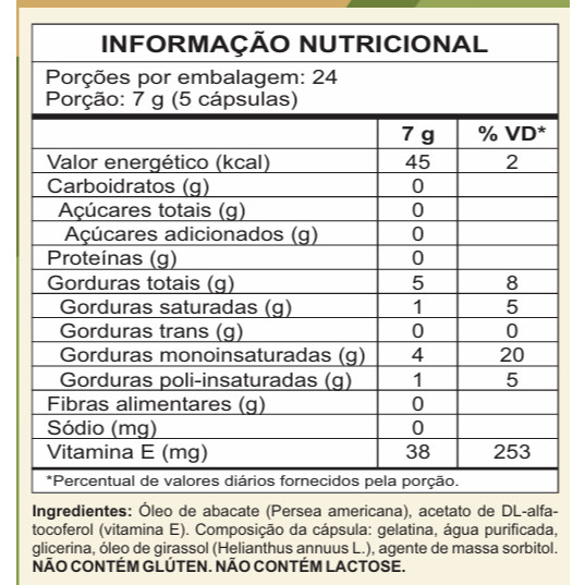 Óleo de abacate em cápsulas 1400mg, Avocado oil natural, 100% original Softgel Vitamina E Oleosa