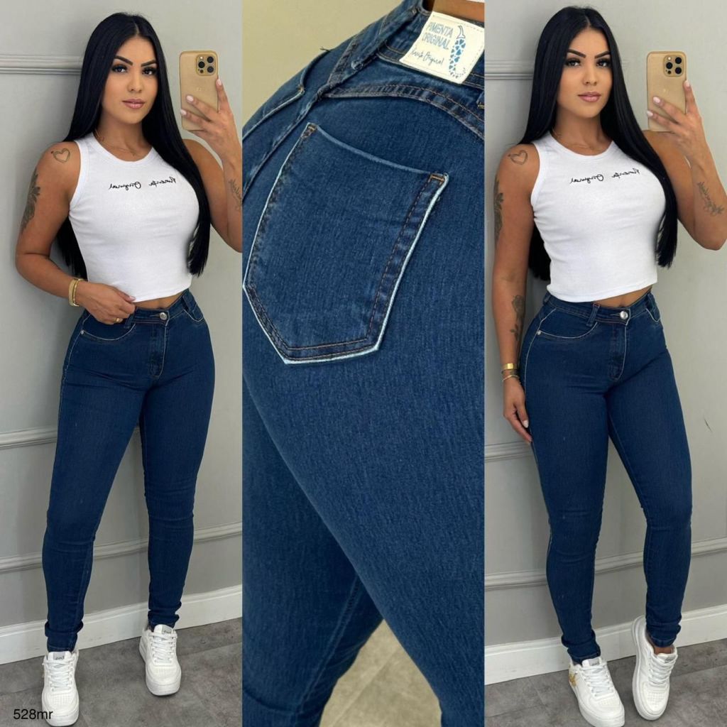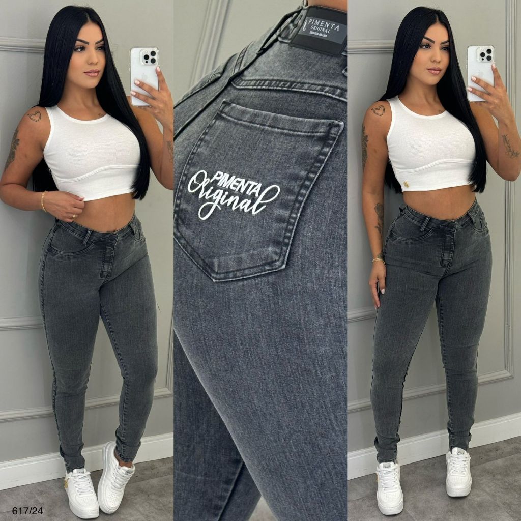 Calça Jeans Feminina Super Skinny Sal E Pimenta e Pimenta Original Cintura Alta com Elastano