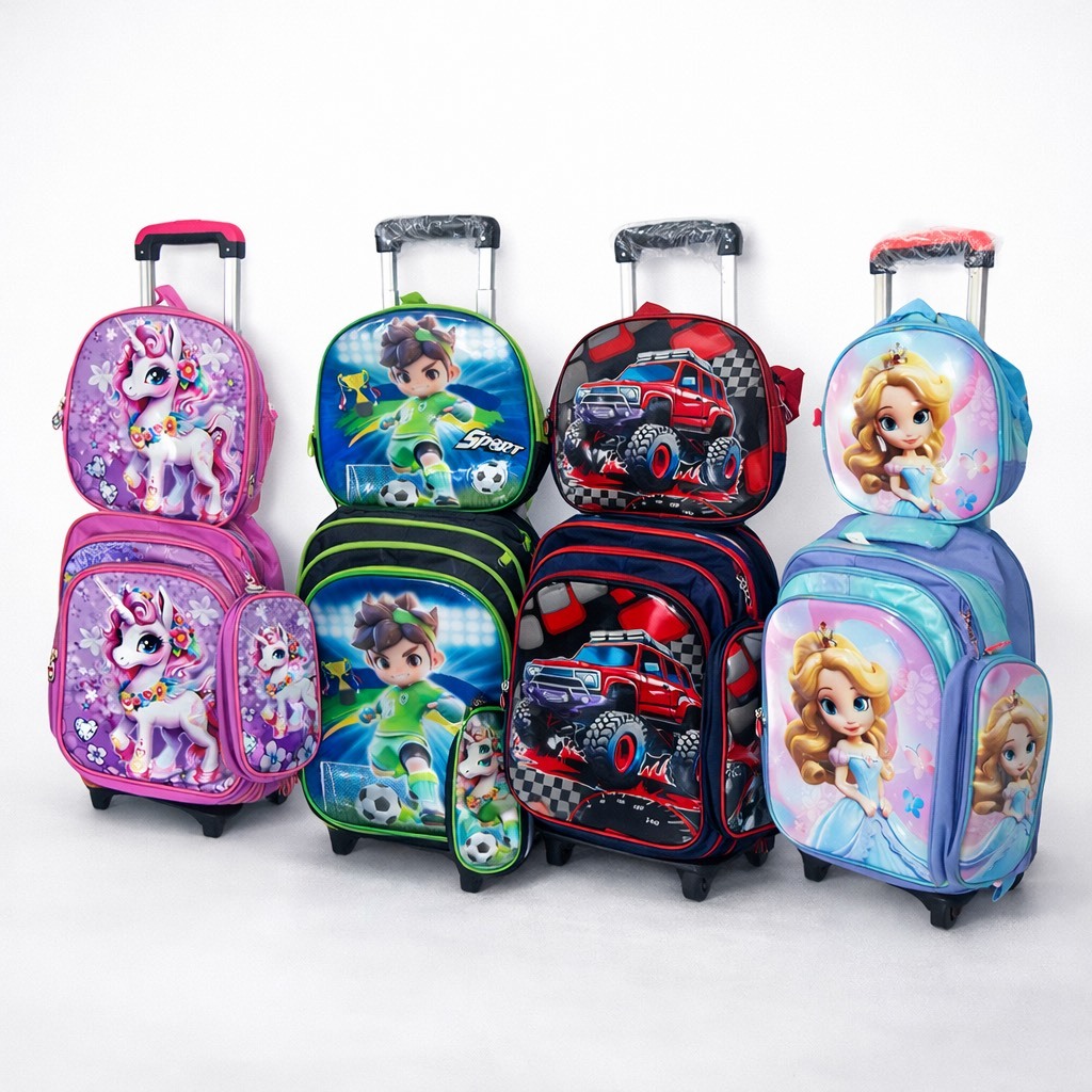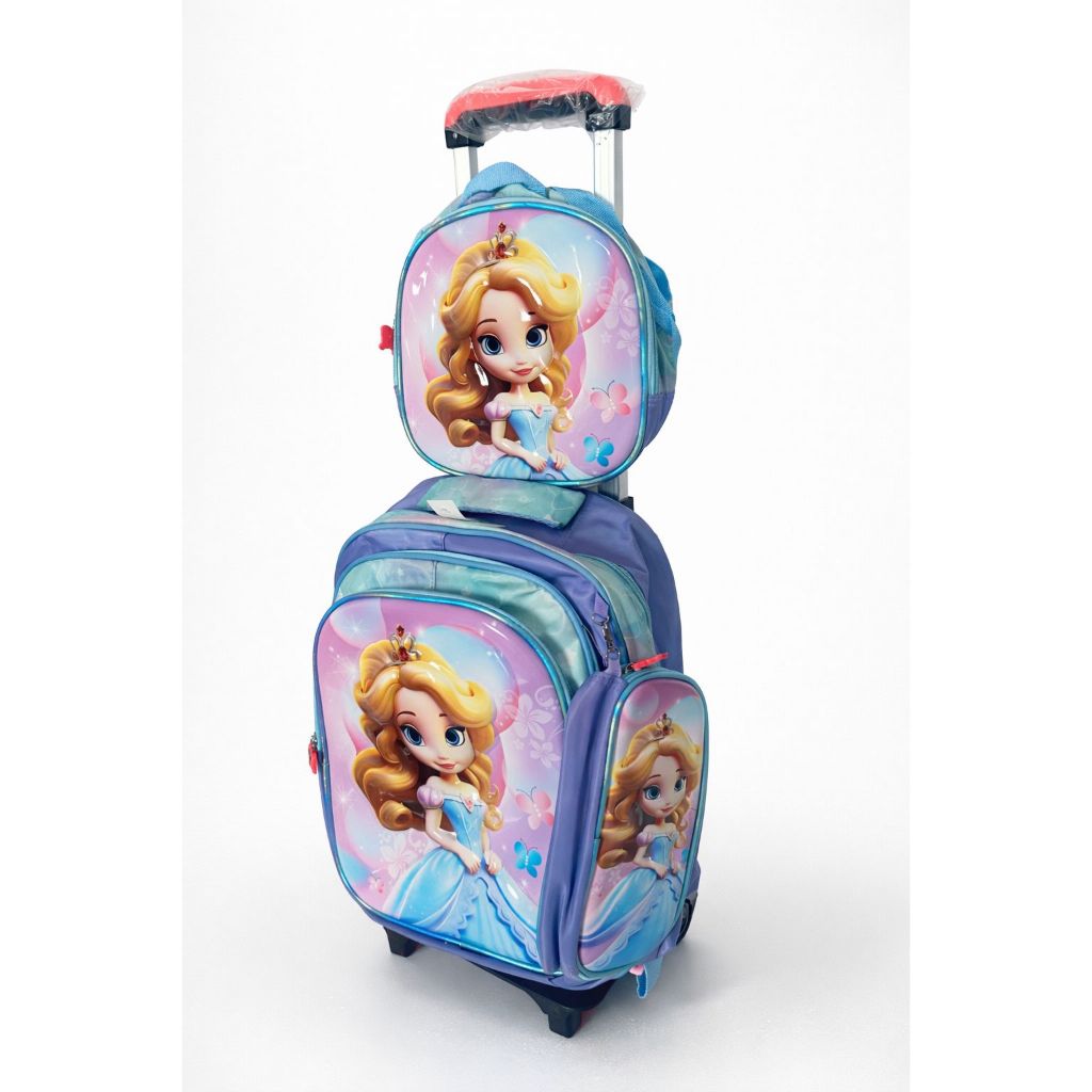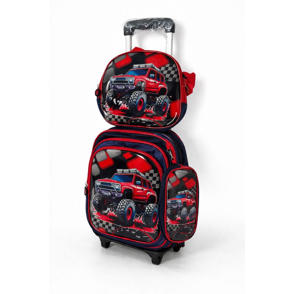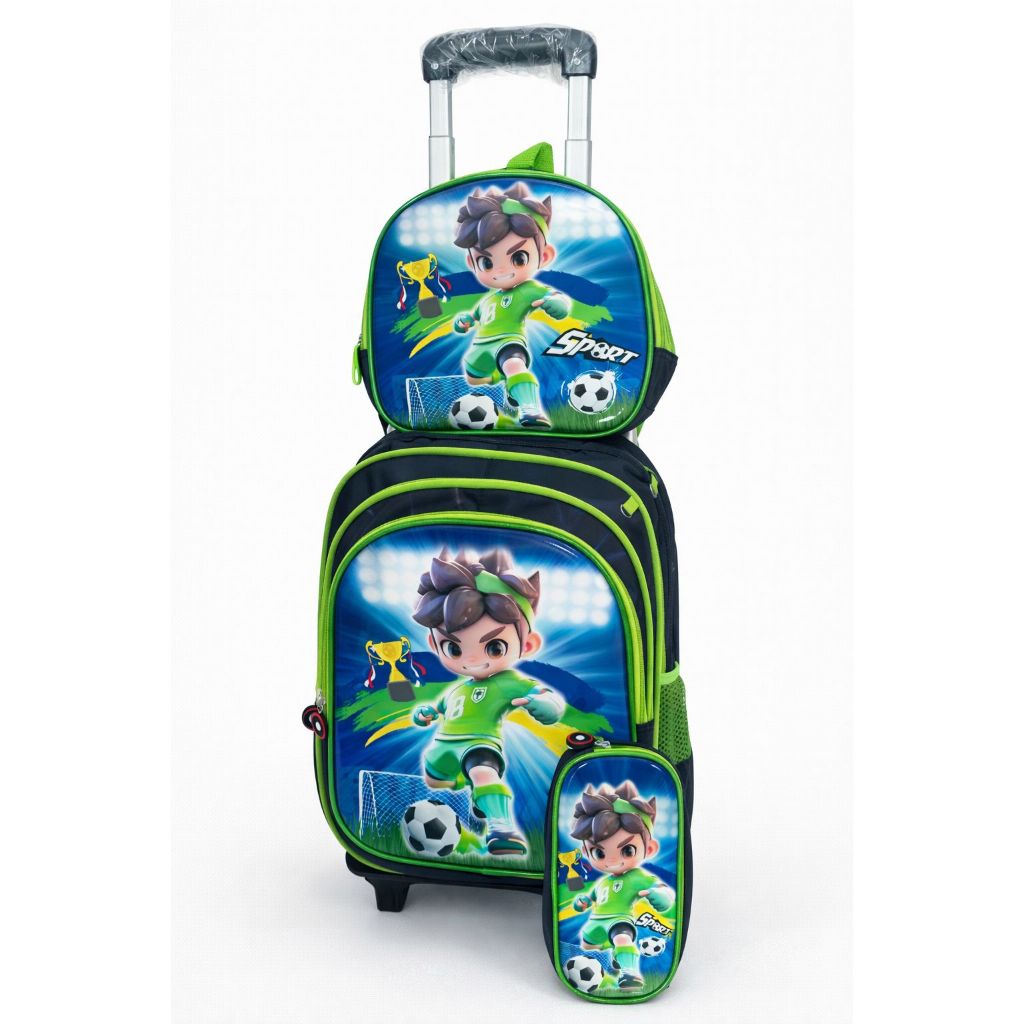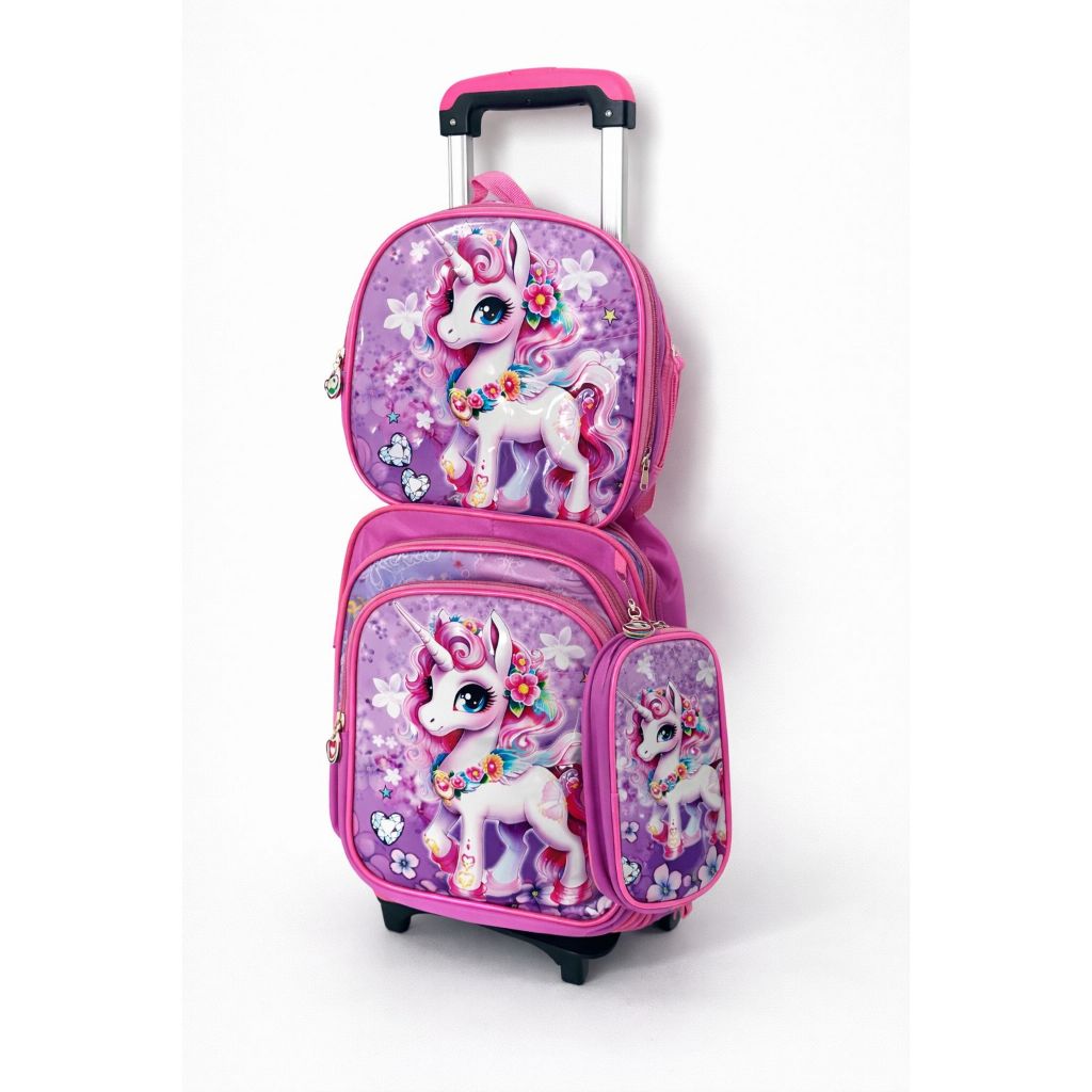 Mochila de Rodinhas + Lancheira + Estojo 3D Com Led Nas Rodinhas Kit Mochila Escolar Menina Menino