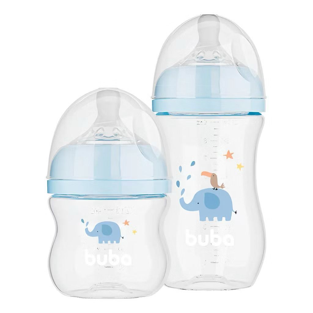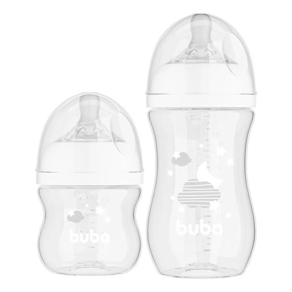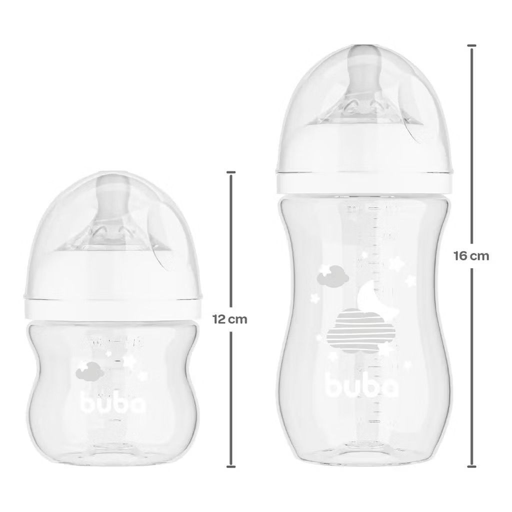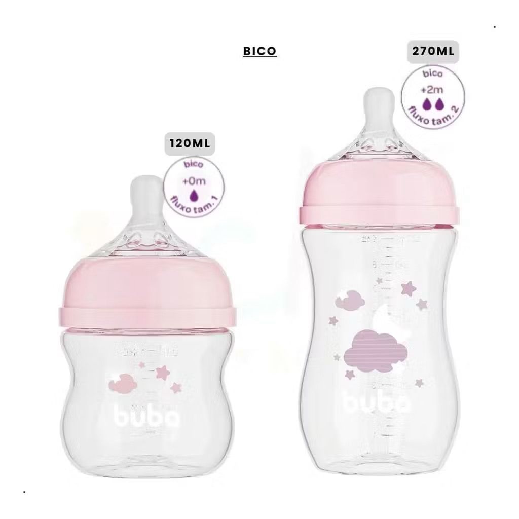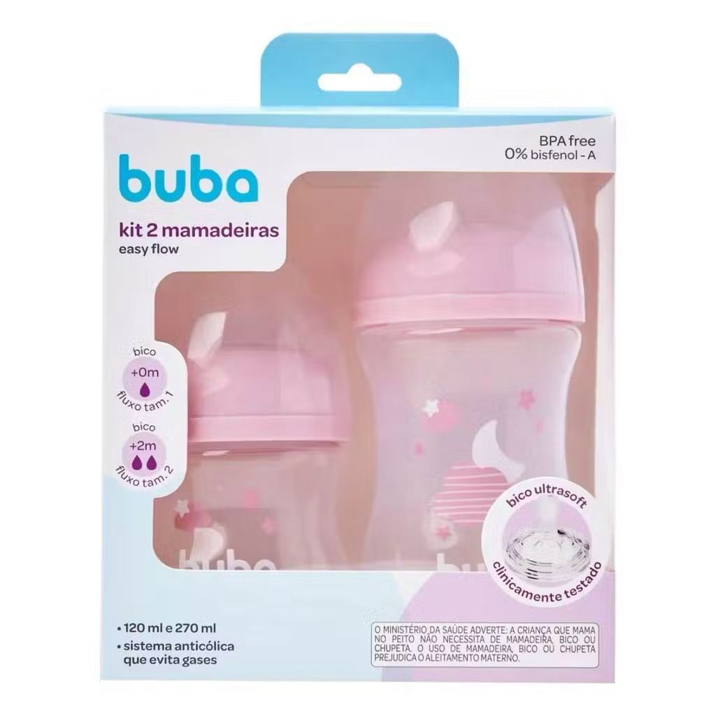 Kit Mamadeira Buba Easy Flow 120ML + 270ML Anticólica Bico de Silicone Nuvem ou Elefantinho