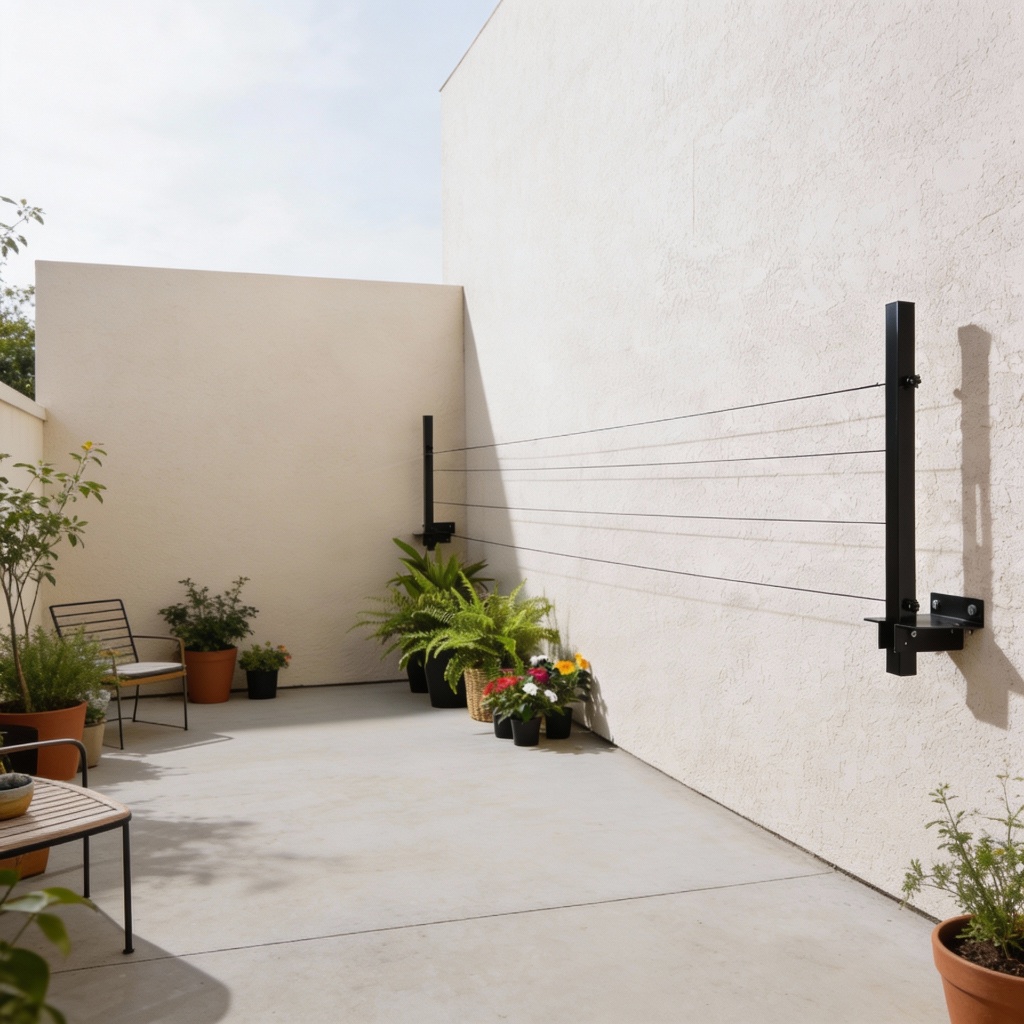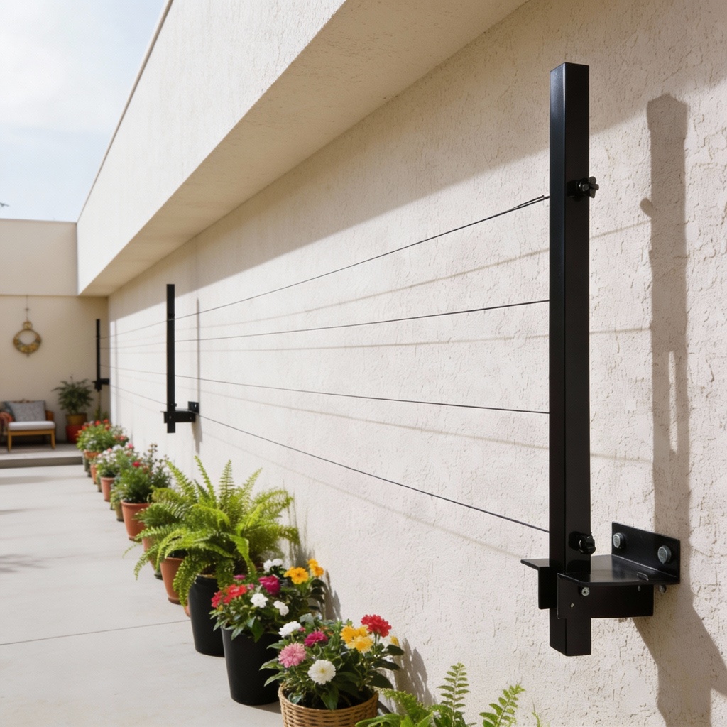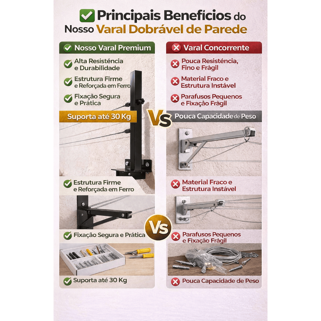Varal Retrátil de Parede Dobrável + Corda de 20 Metros e Kit de Instalação Varal de Roupa Preto