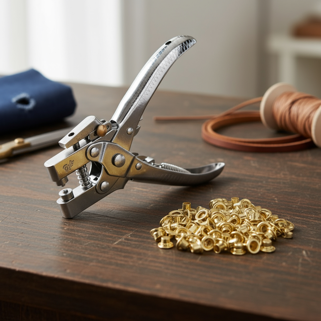 Alicate Aplicar Ilhós 2 em 1 Profissional Fura e Aplica + 100 Ilhós Lanmax