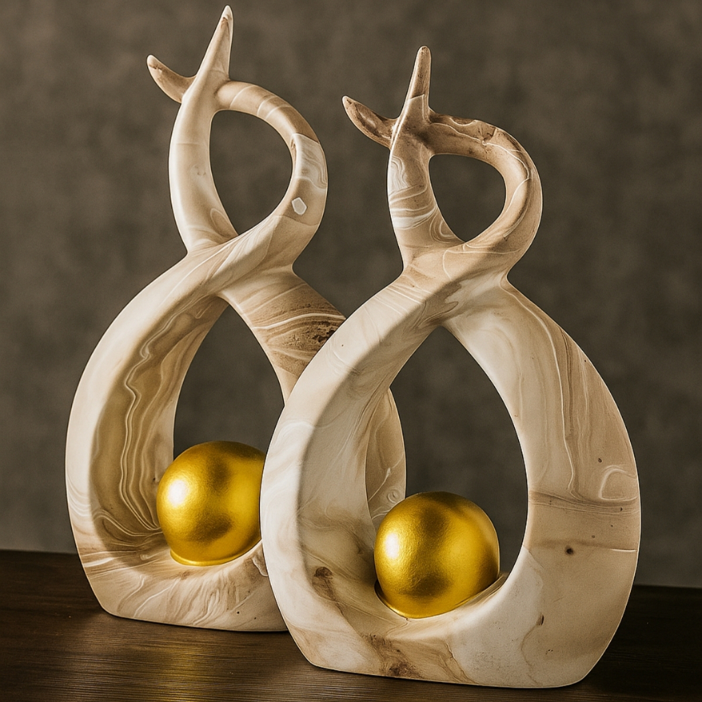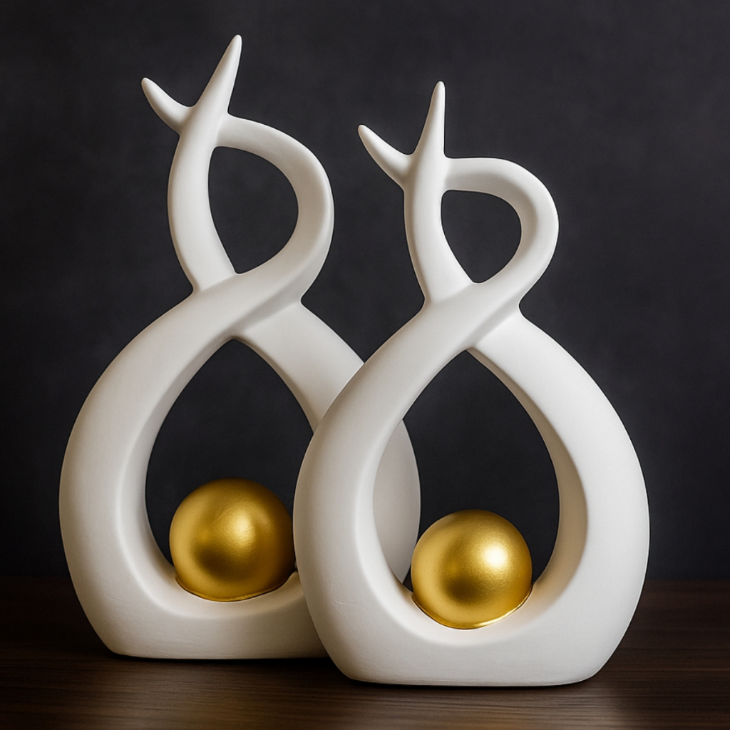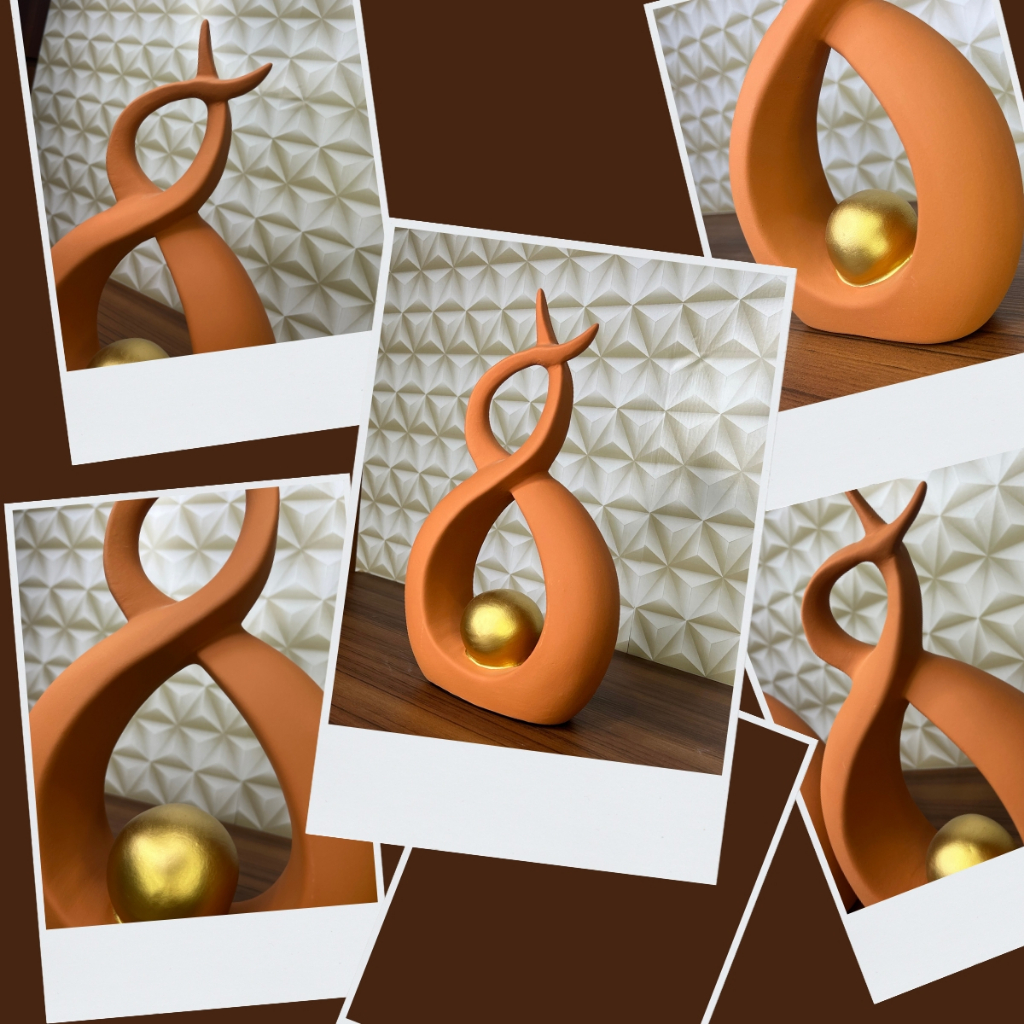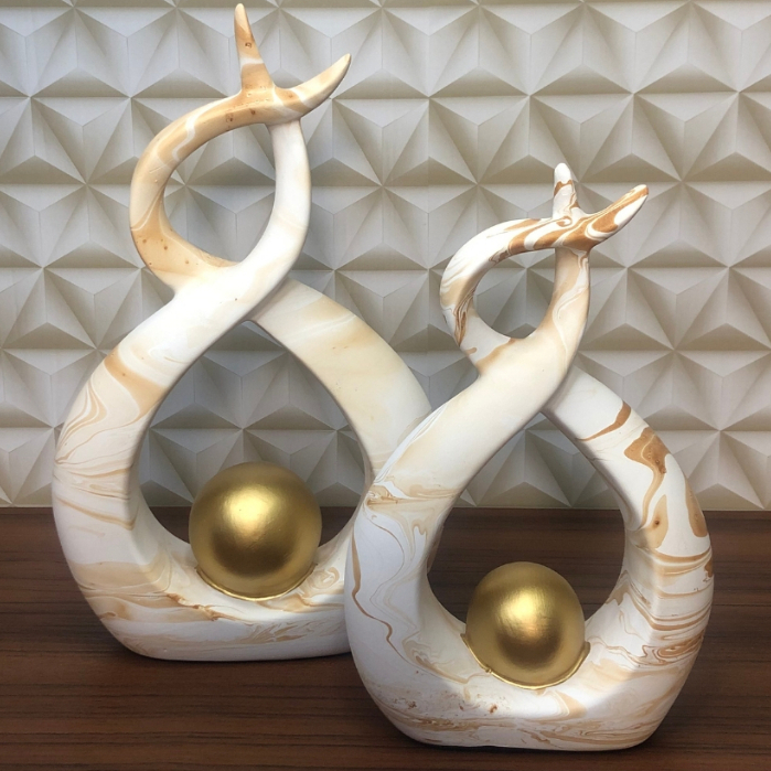 Enfeite Dupla Vasos C/ Esfera Dourada Cerâmica Decoração P/ Rack Sala Várias Cores