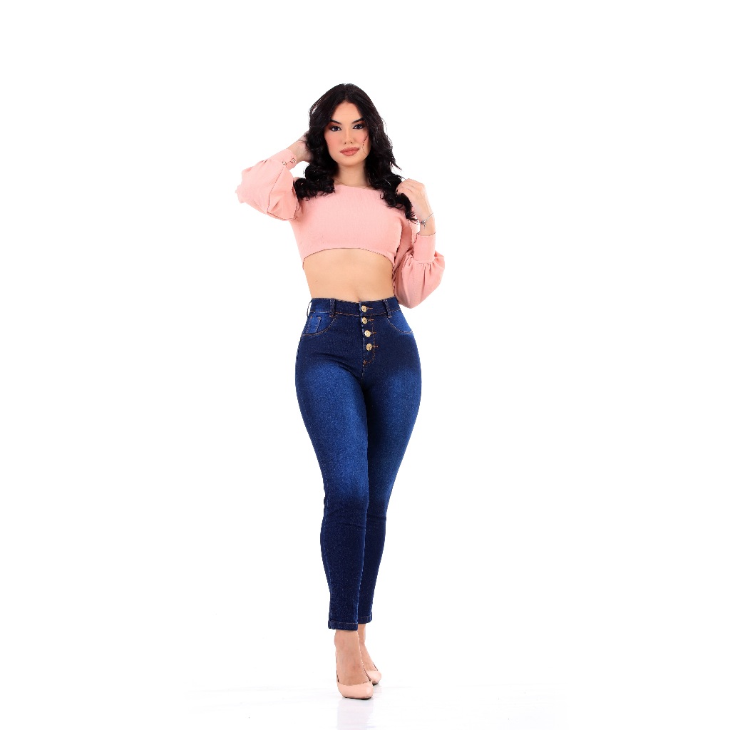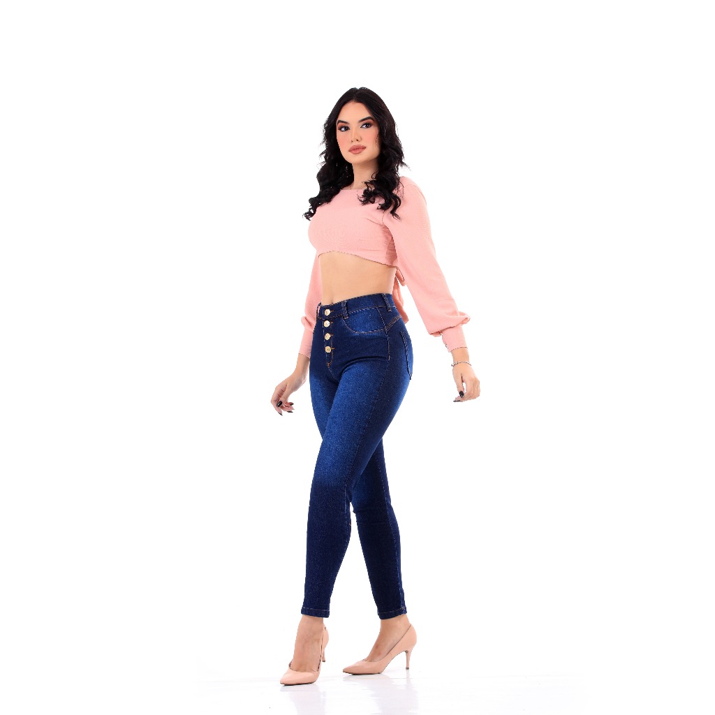 Calça Jeans Feminina Destroyed Azul Denim Skinny