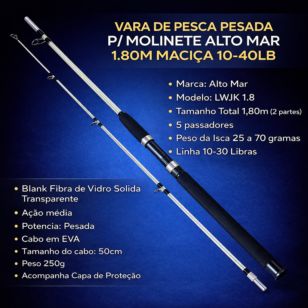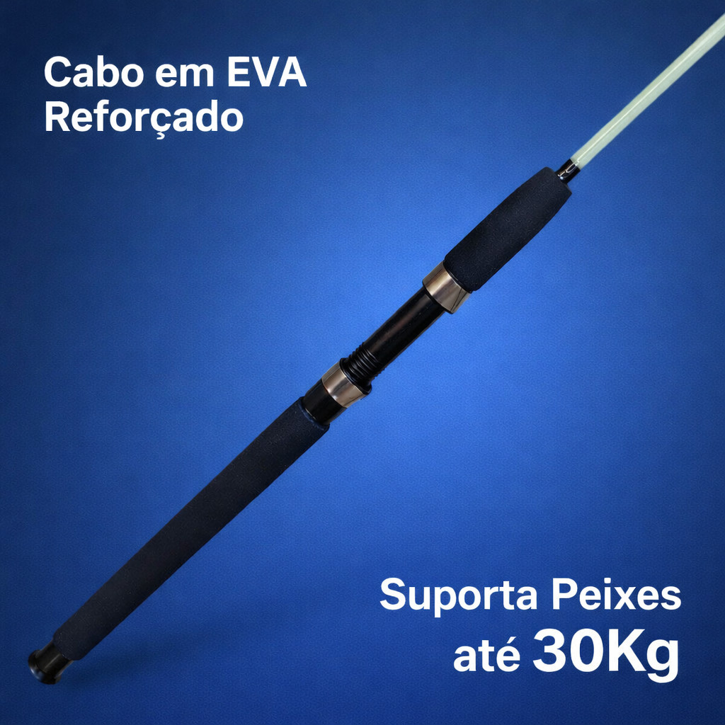 VARA DE PESCA PARA MOLINETE PESCA PESADA ALTO MAR 1.80M MACIÇA 10-40LB C/ ROSCA - 2PARTES - REFORCADA - PEIXES ATE 30KG