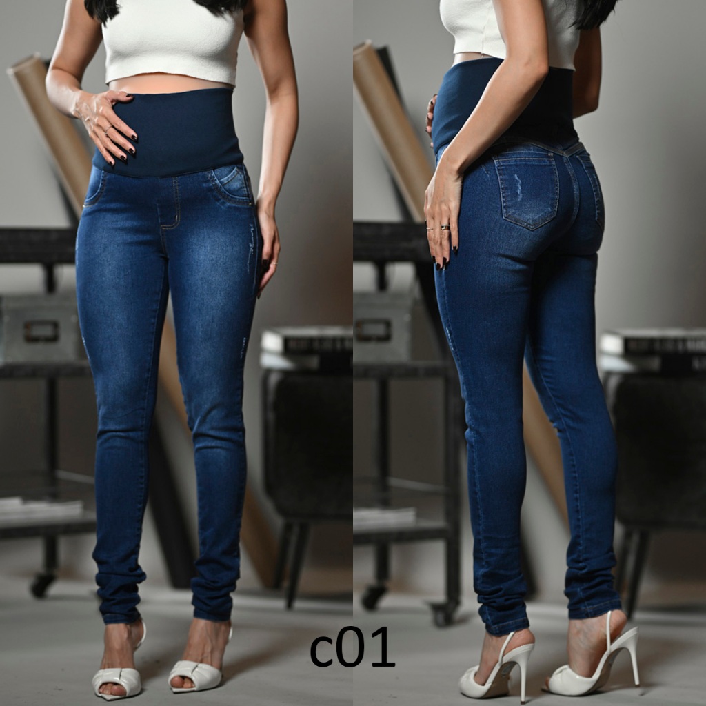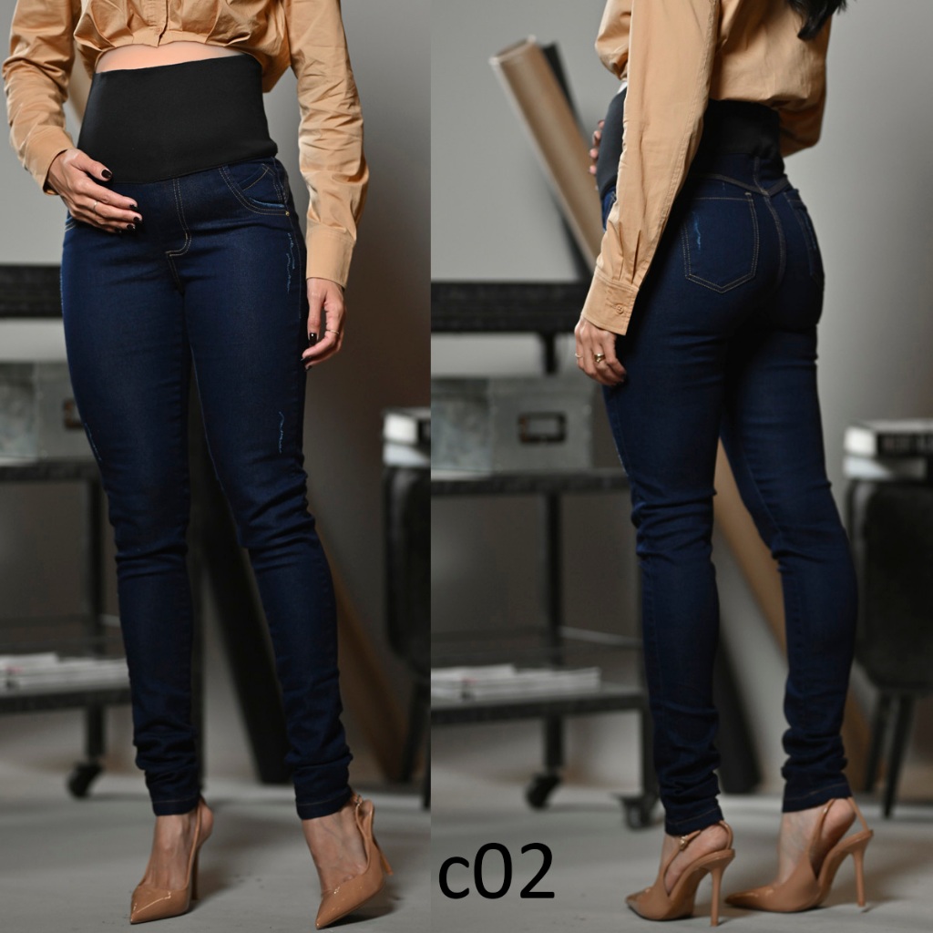Calça Jeans Para Gravidas Gestante Elastano Com Cós Confortável