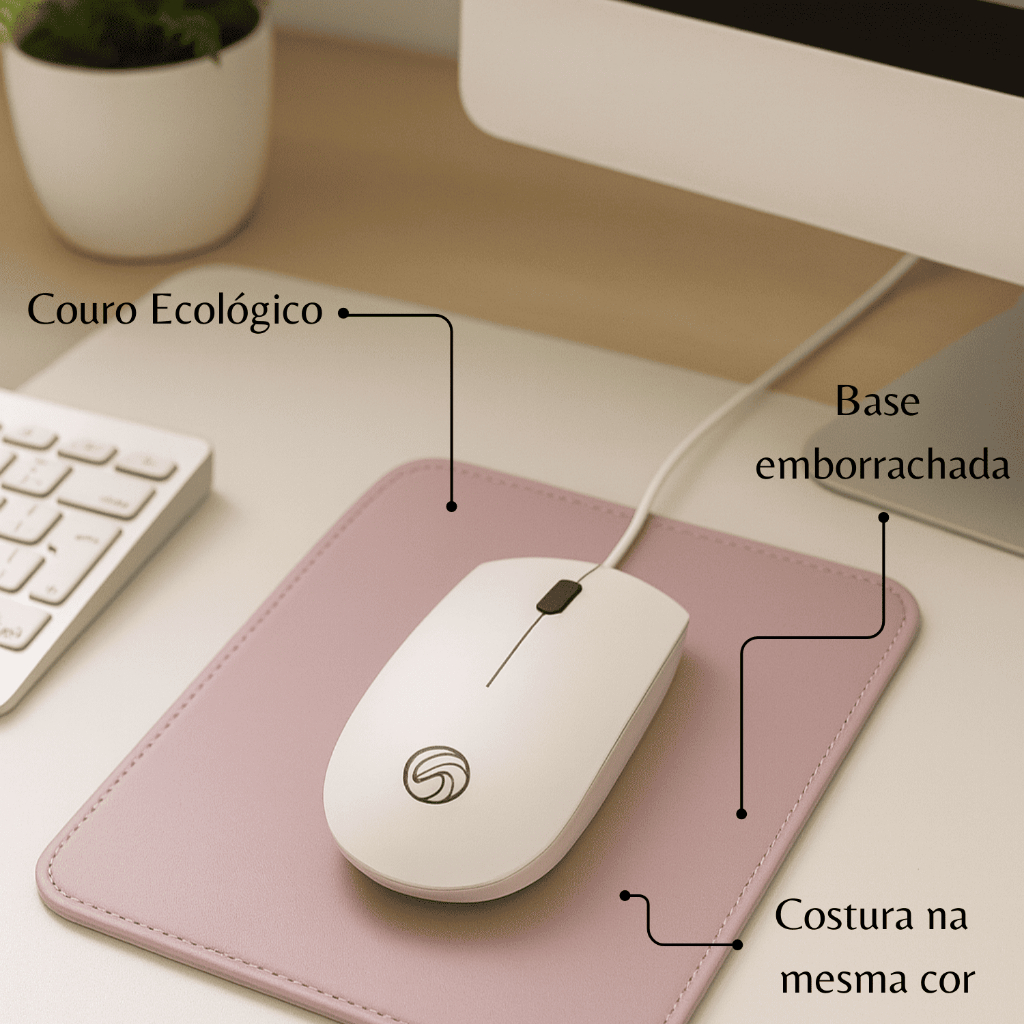 Mouse Pad Pequeno Couro Sintético Rosa Clarinho