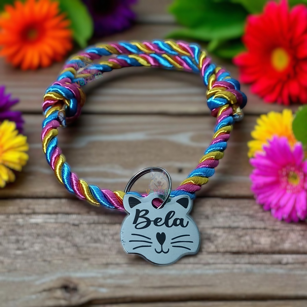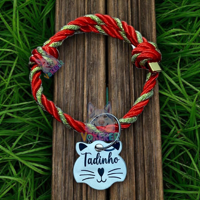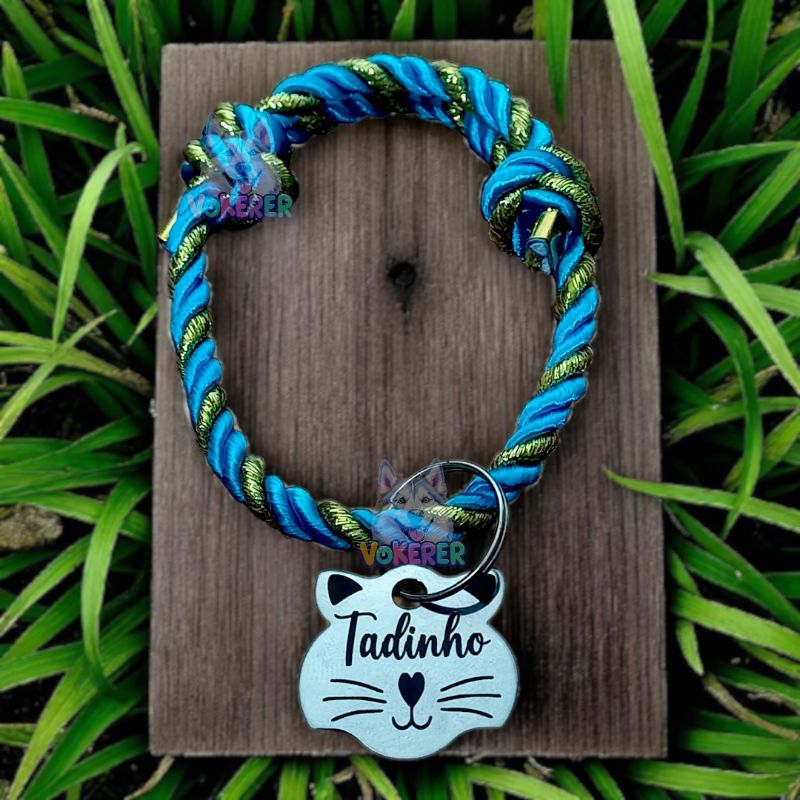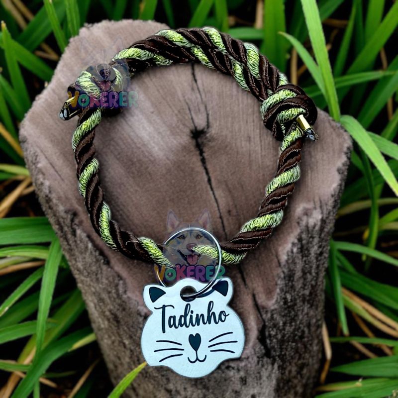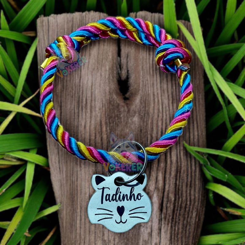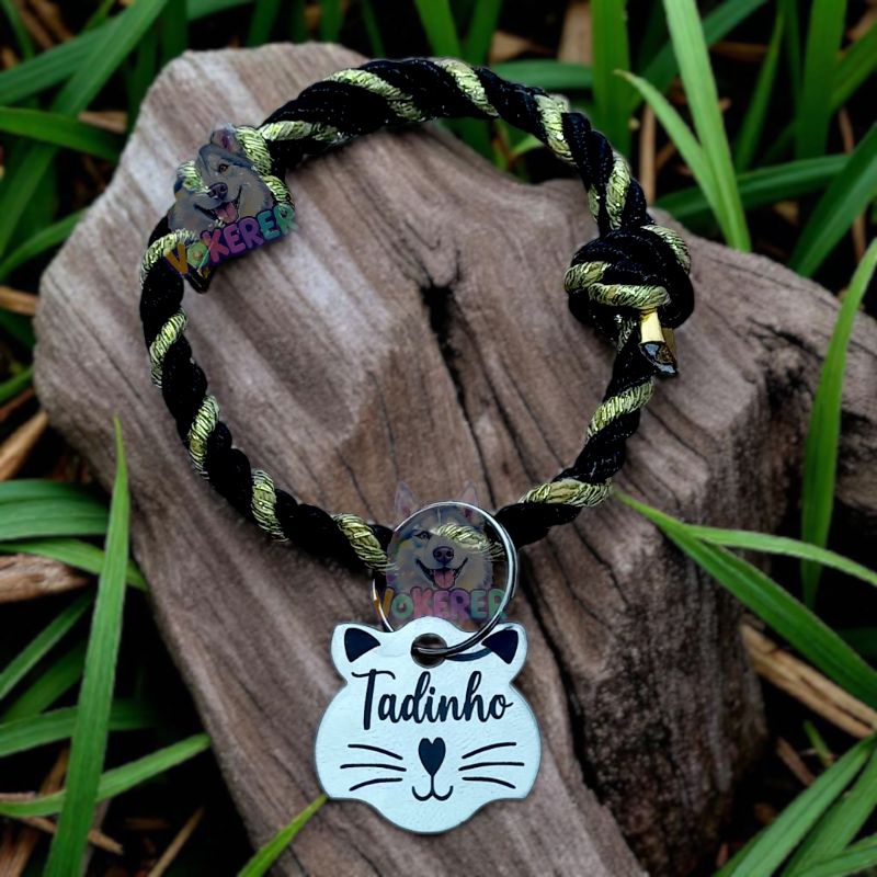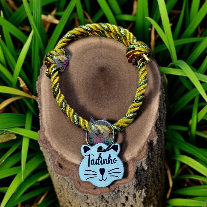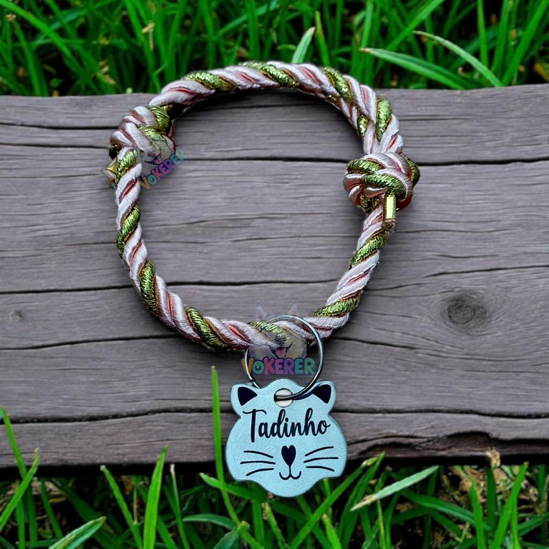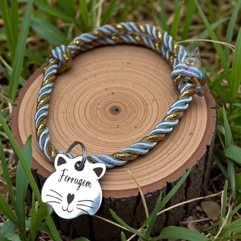 Coleira Gato Colar Trançado com Nome Personalizado Tag Cat em Aço