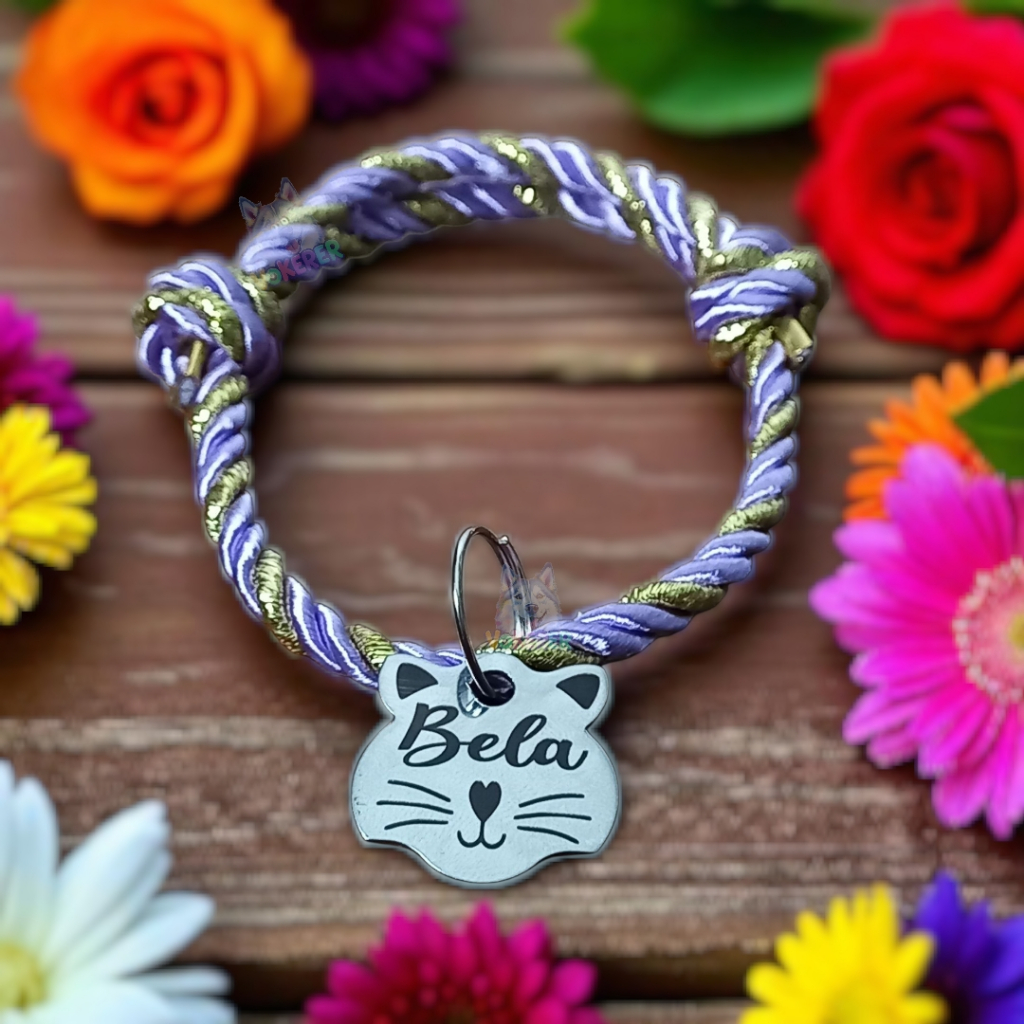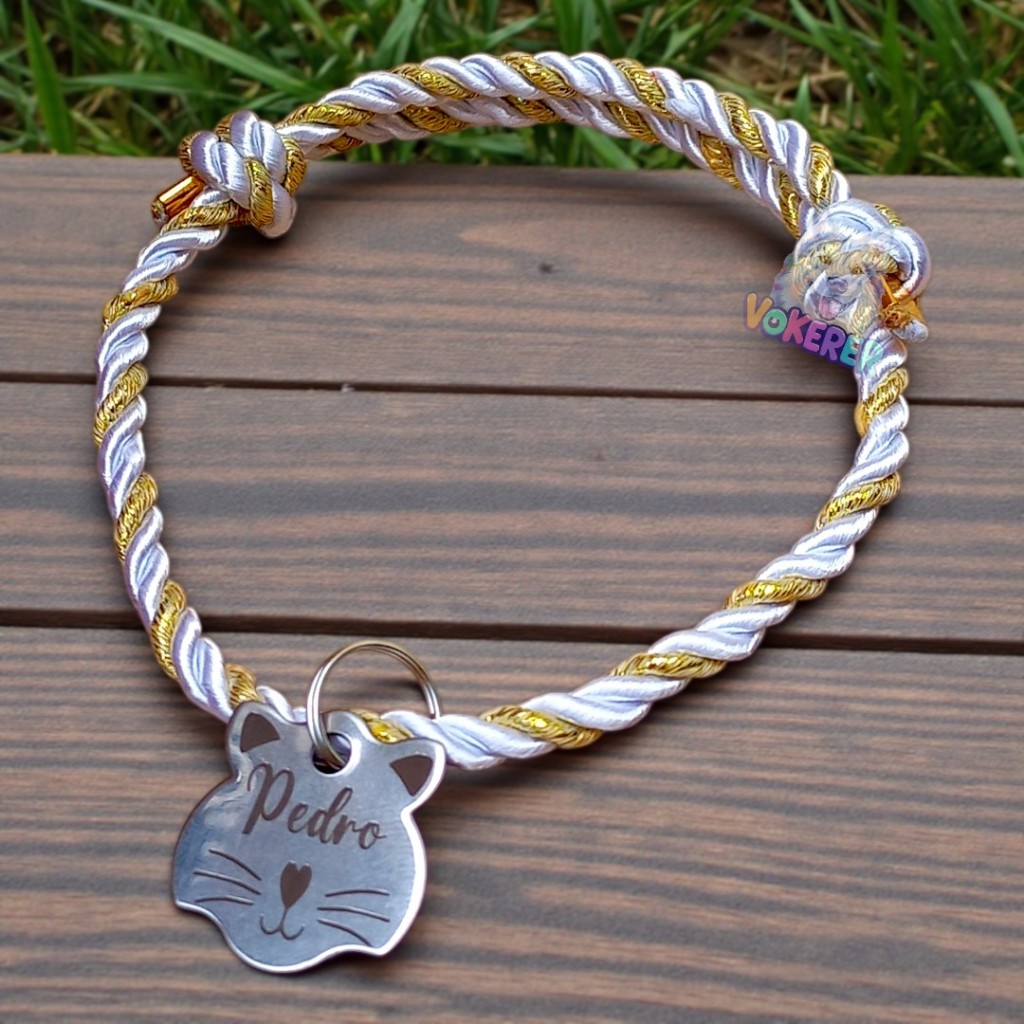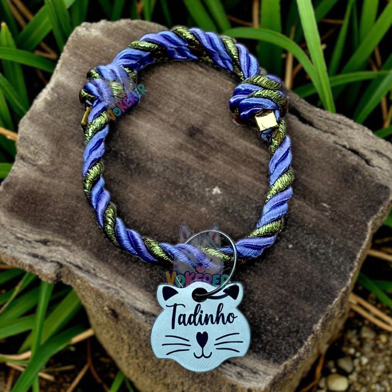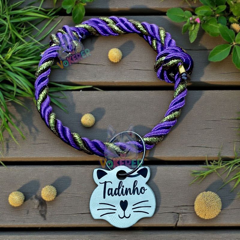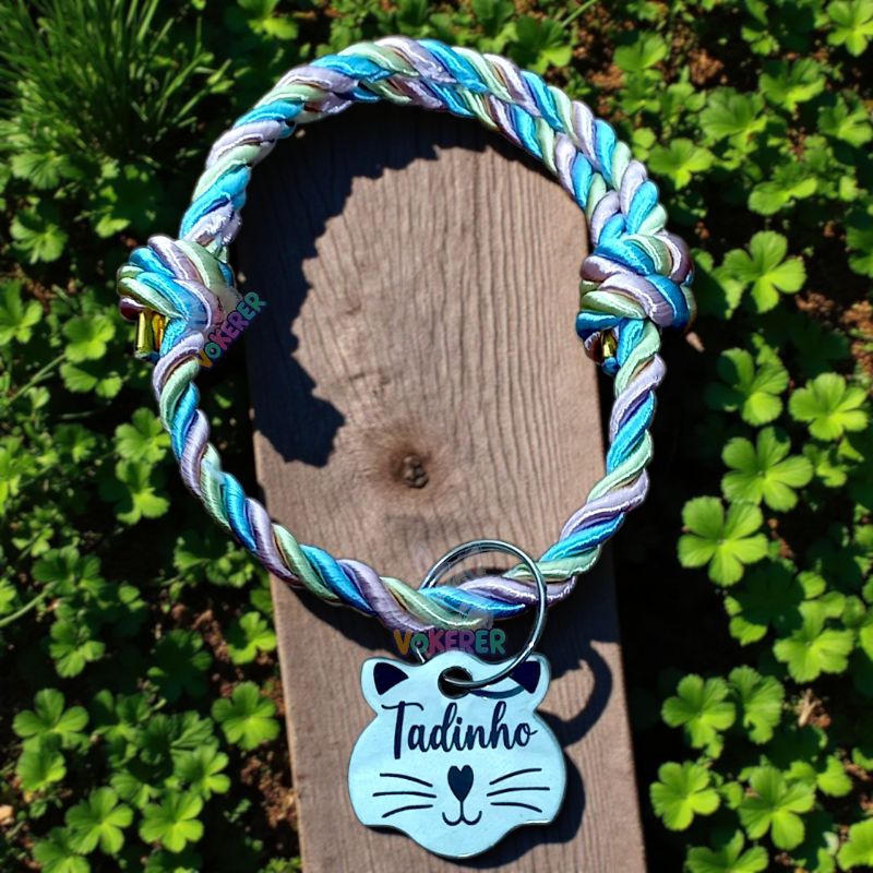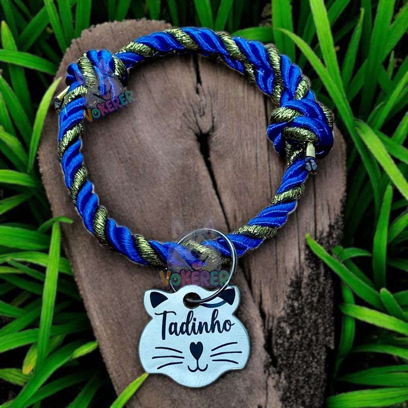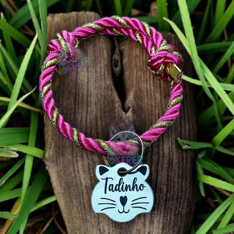 Coleira Gato Colar Trançado com Nome Personalizado Tag Cat em Aço