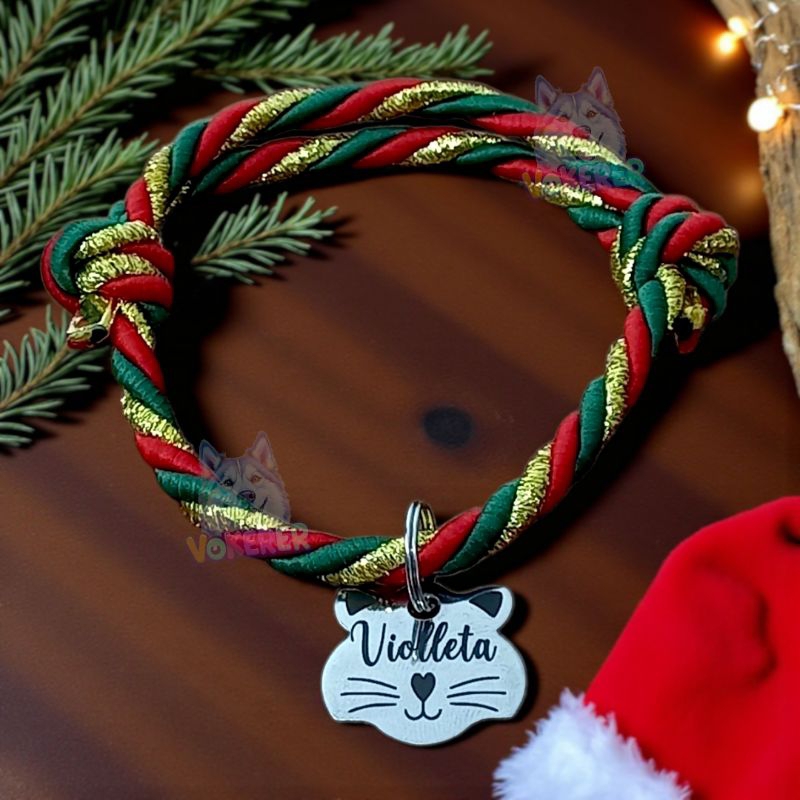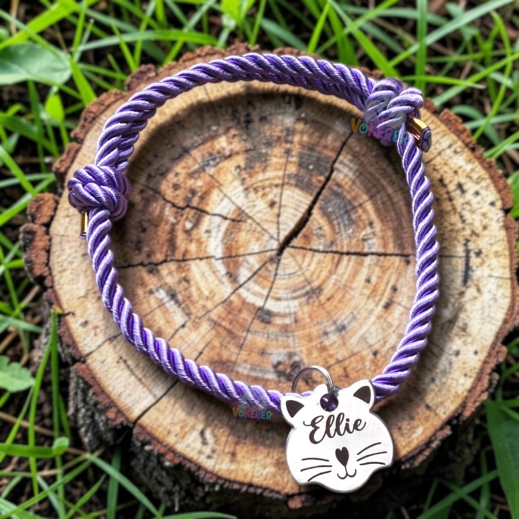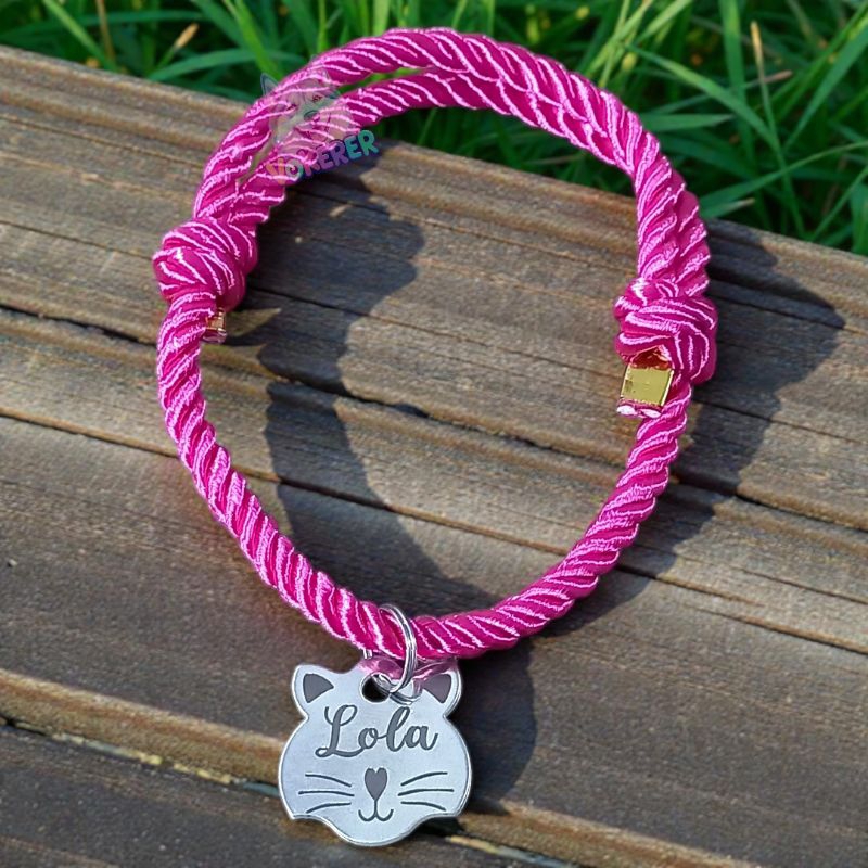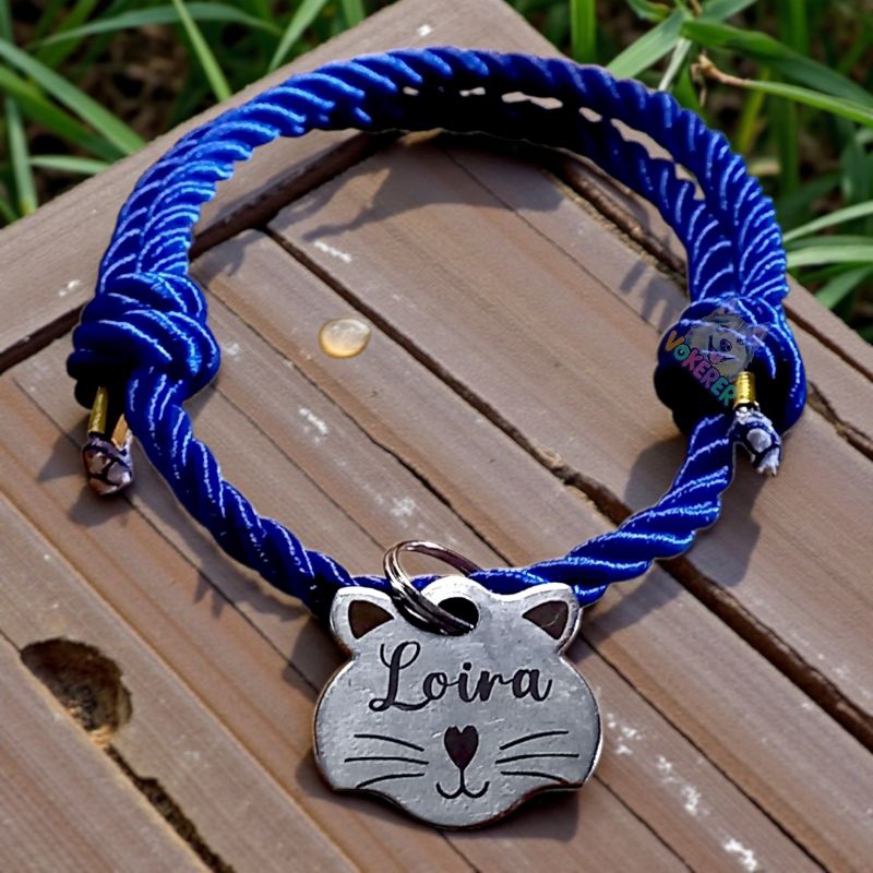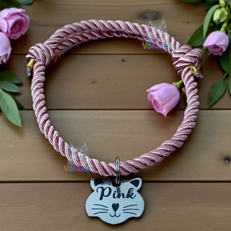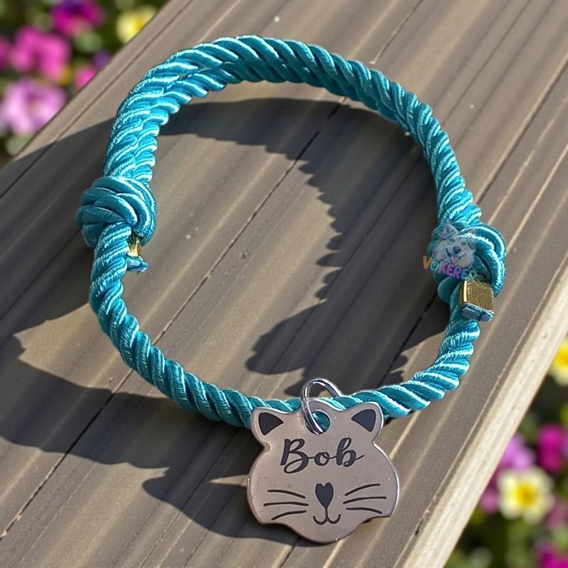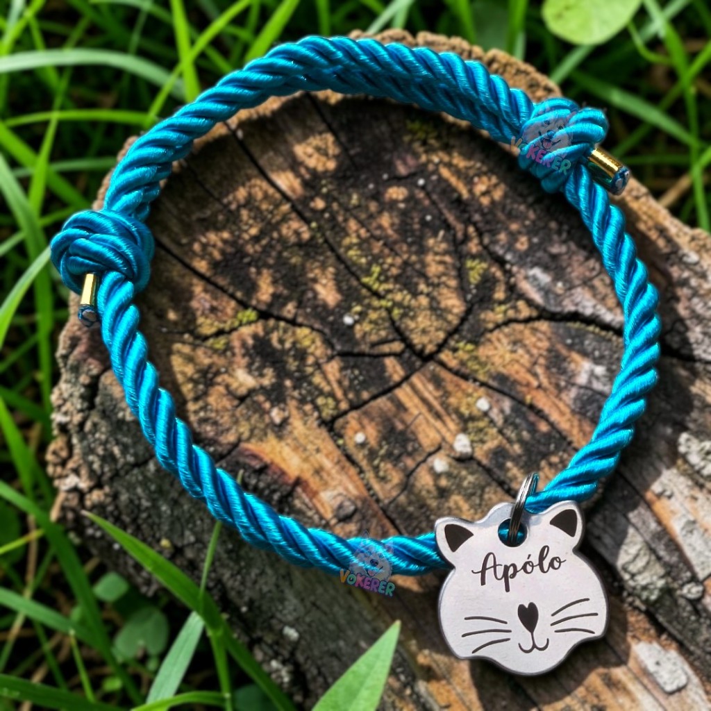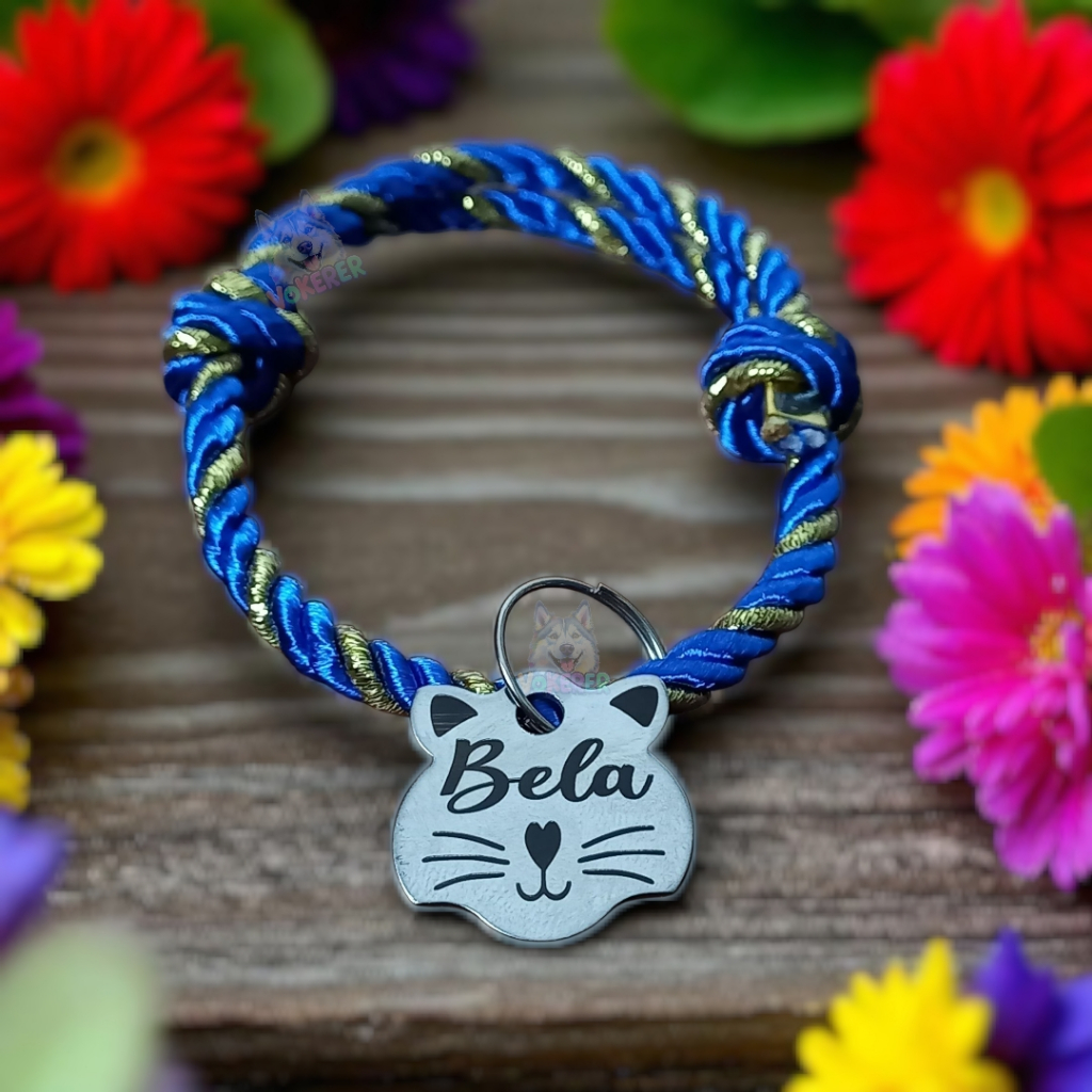 Coleira Gato Colar Trançado com Nome Personalizado Tag Cat em Aço