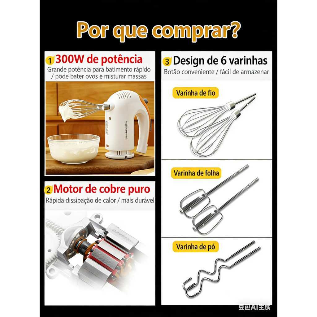 Batedeira De Mão Elétrica Portátil 5 Velocidades 300W Potência 110V