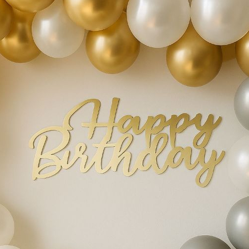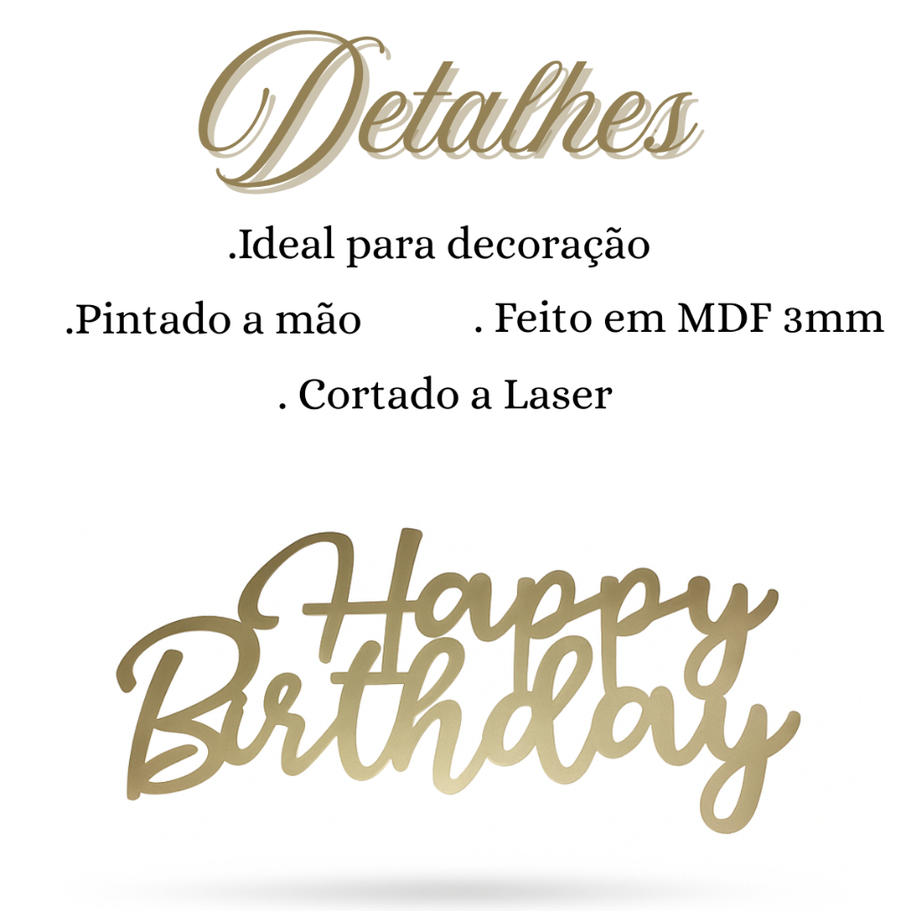Letreiro Placa Display Festiva Happy Dourada