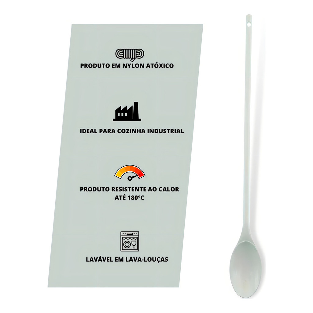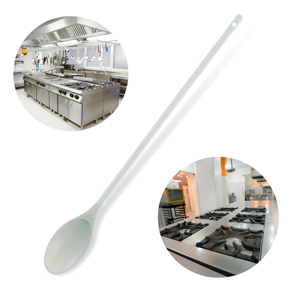Colher Nylon 50cm Resistente Calor Cozinha Industrial Grande Cabo Branco