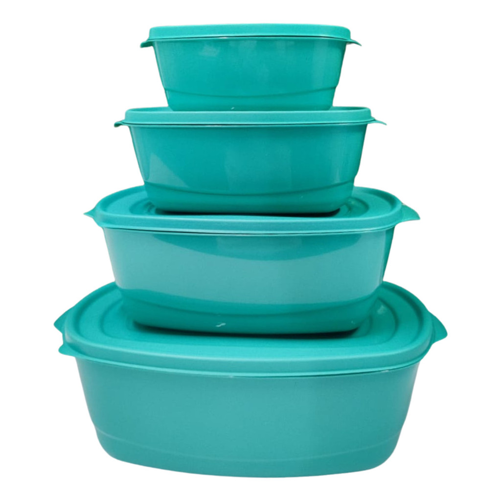 Jogo Com 4 Potes C/tampa Organizador Vasilha Resistente Oval Verde Tifany