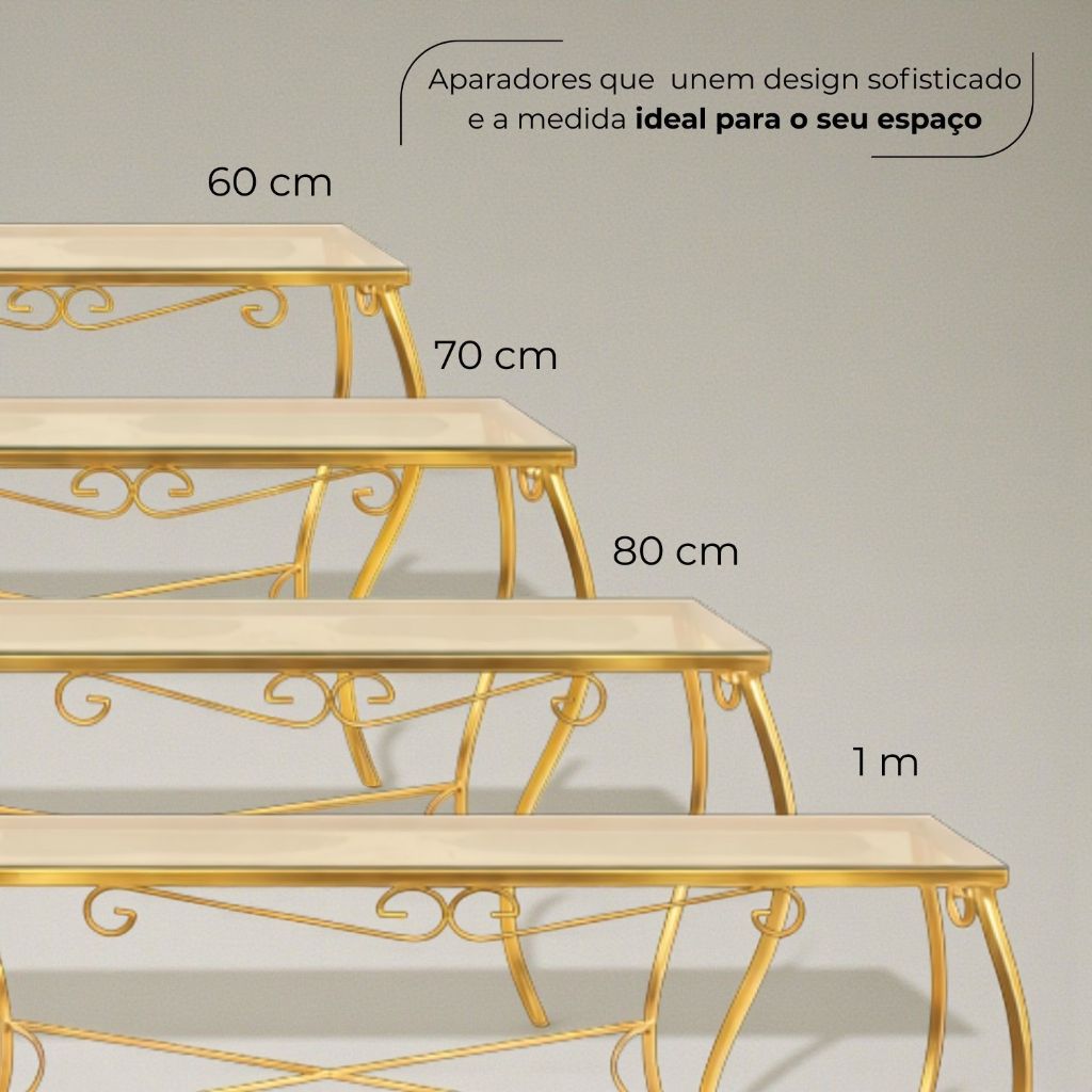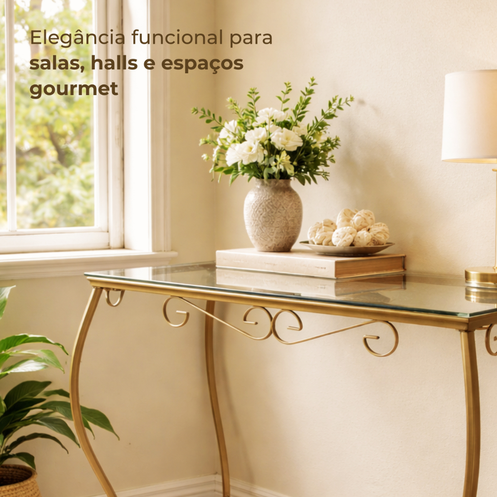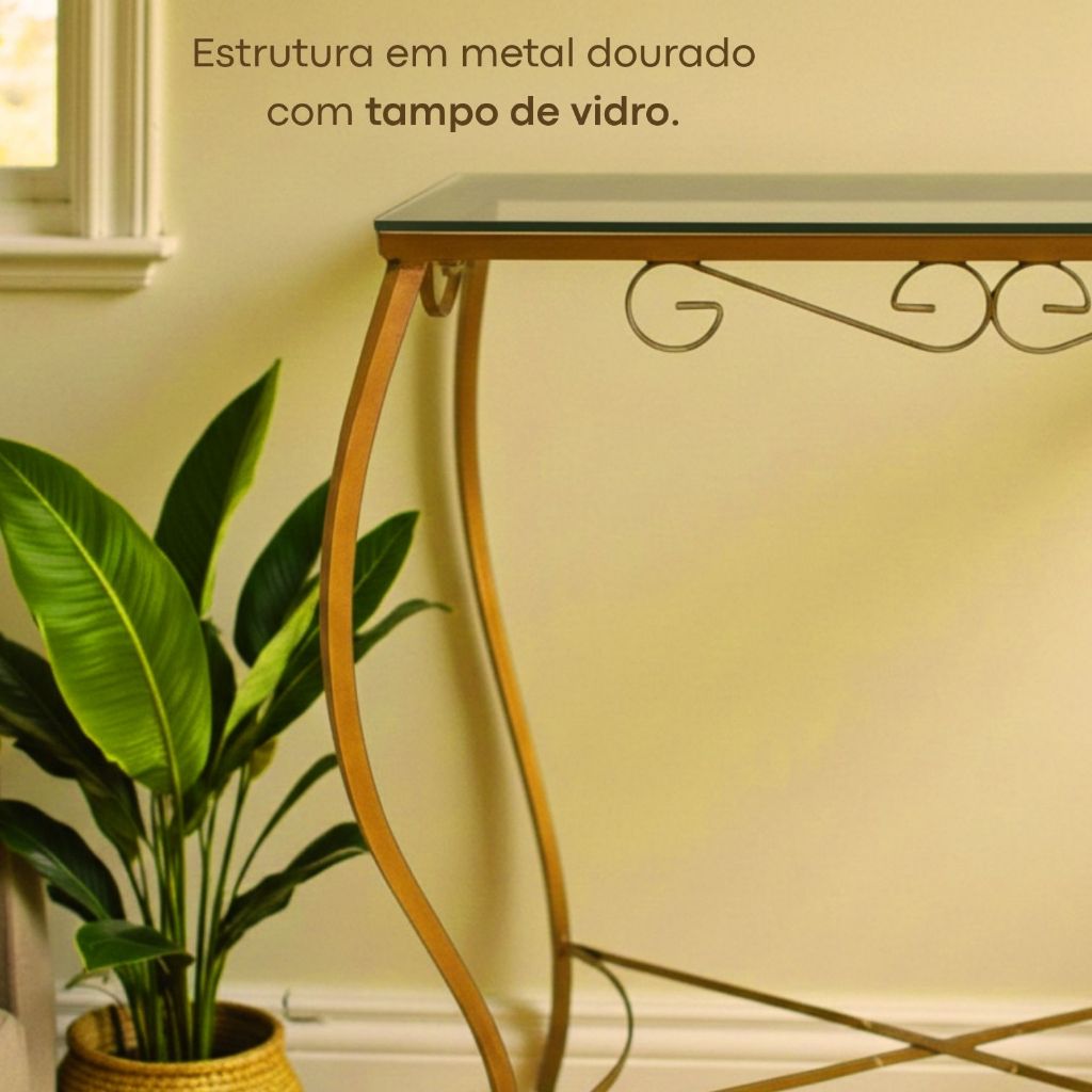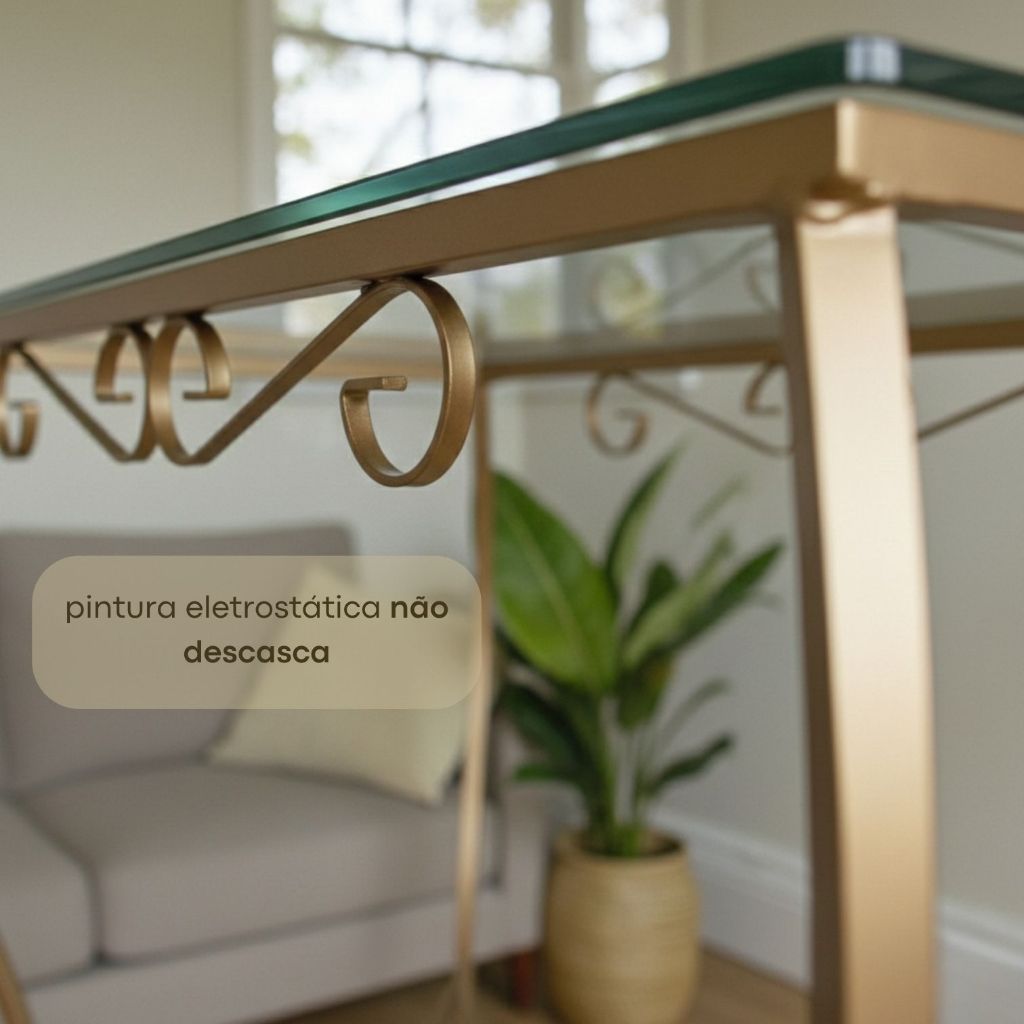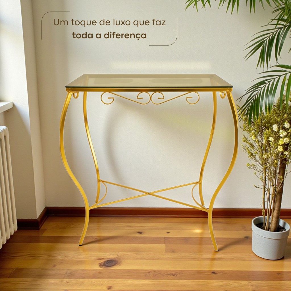 Aparador de Ferro Dourado Decoração Sala Móveis Mesa com Vidro Moderno Cantinho do Café