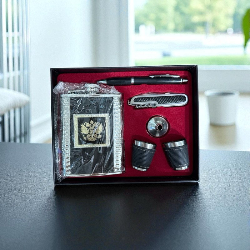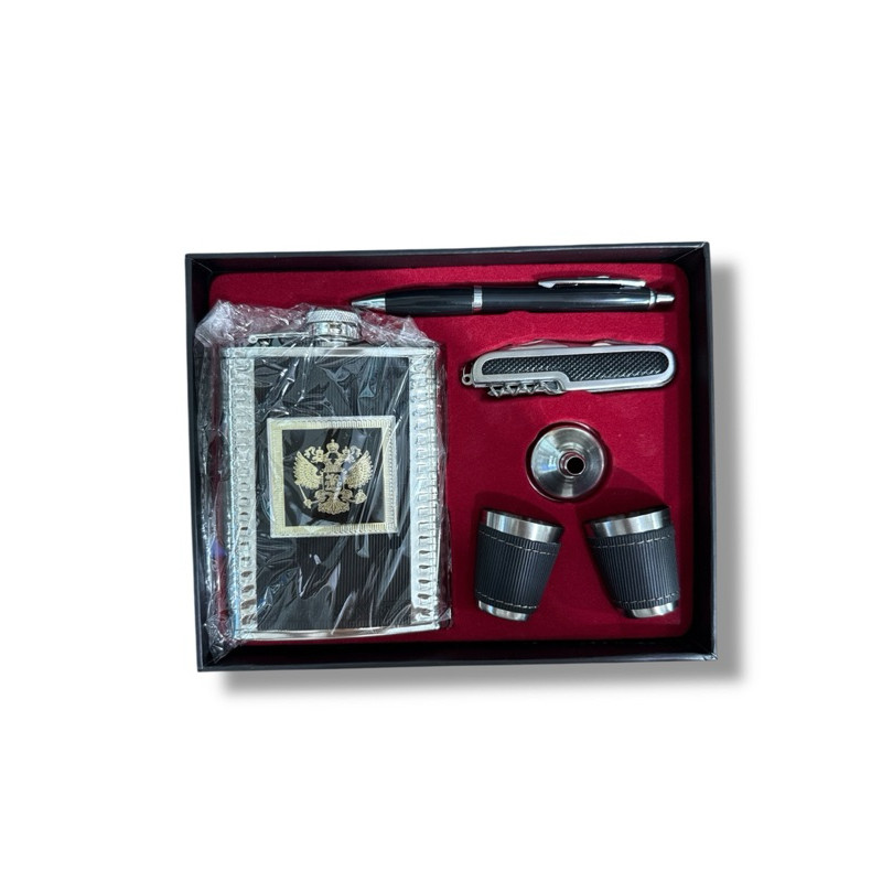 Kit Cantil Whisky Acessórios Porta Bebida 2 Copos Canivete Caneta Funil Caixa de Presente Luxo