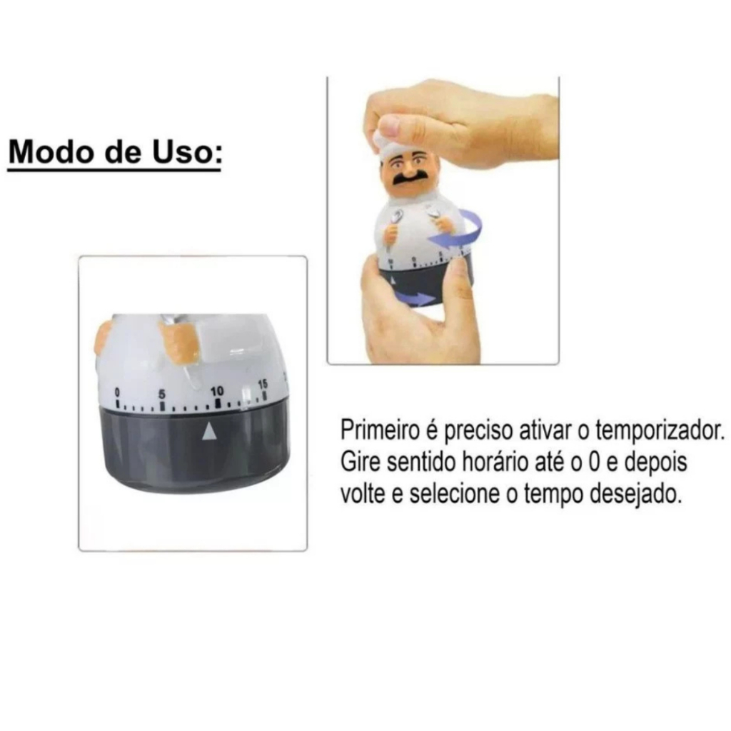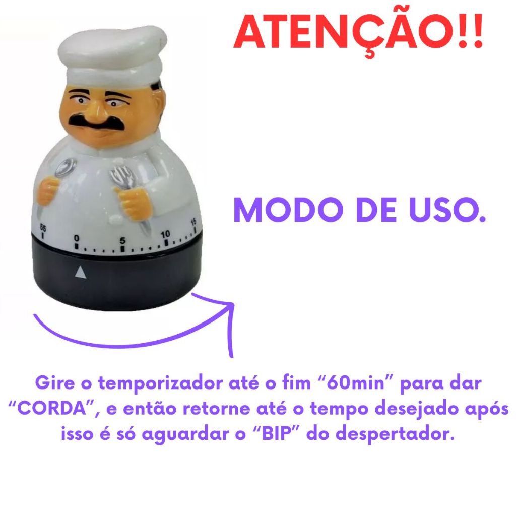 Timer Culinário Boneco Cozinheiro Temporizador De Bancada P/ Cozinha Manual