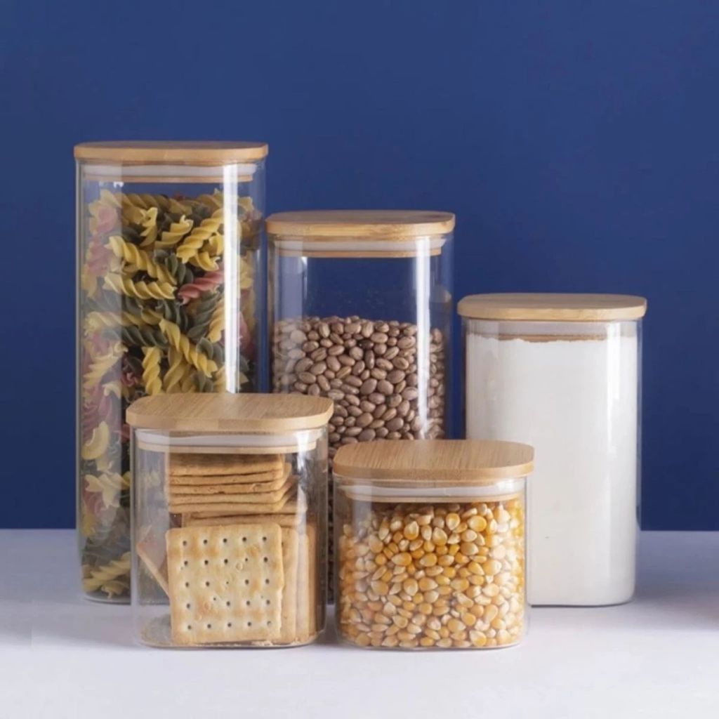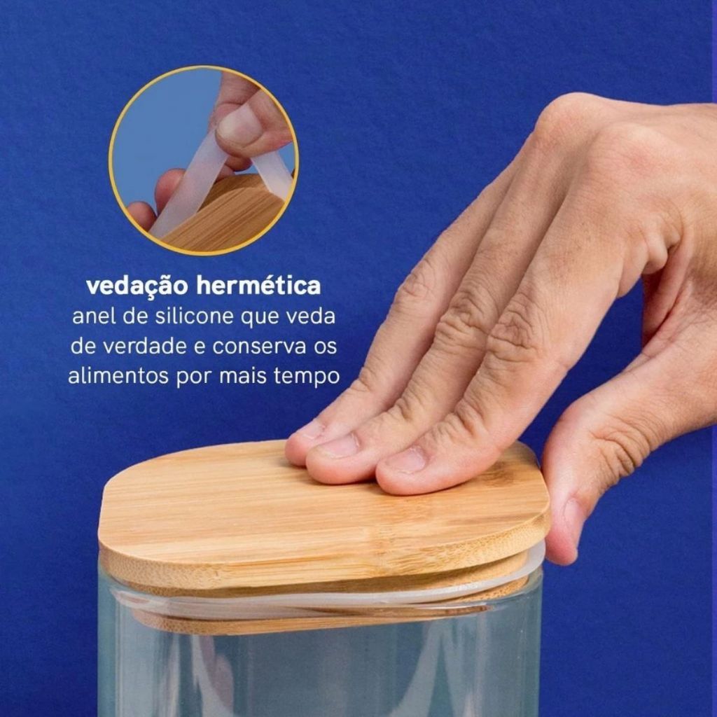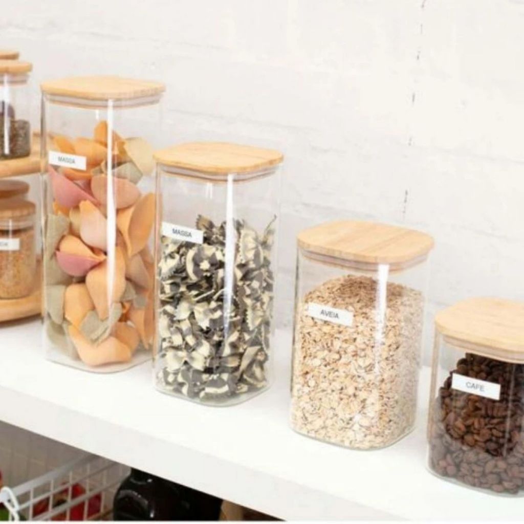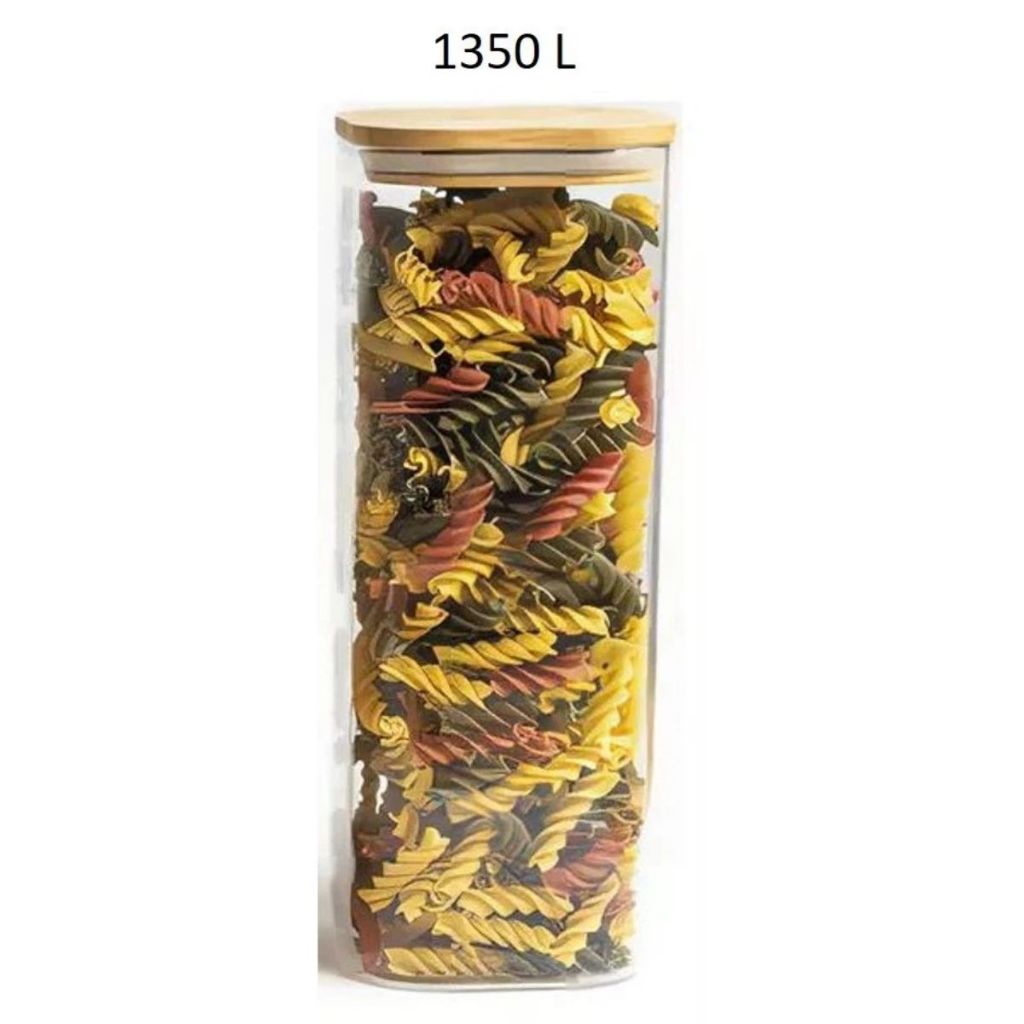 Pote Hermético Vidro Porta Mantimentos Quadrado 1350ml Hermético Tampa Bambu Tamanho Grande