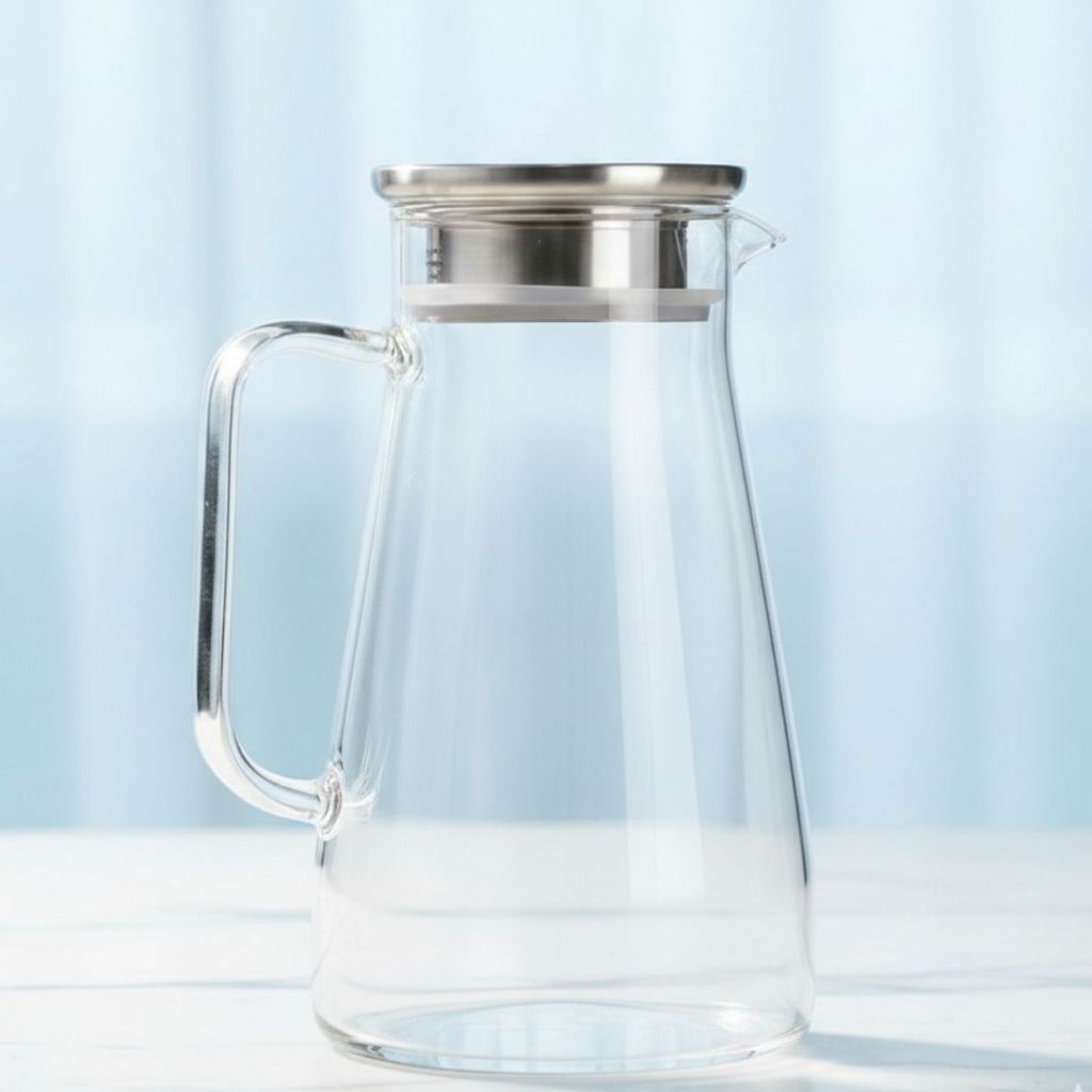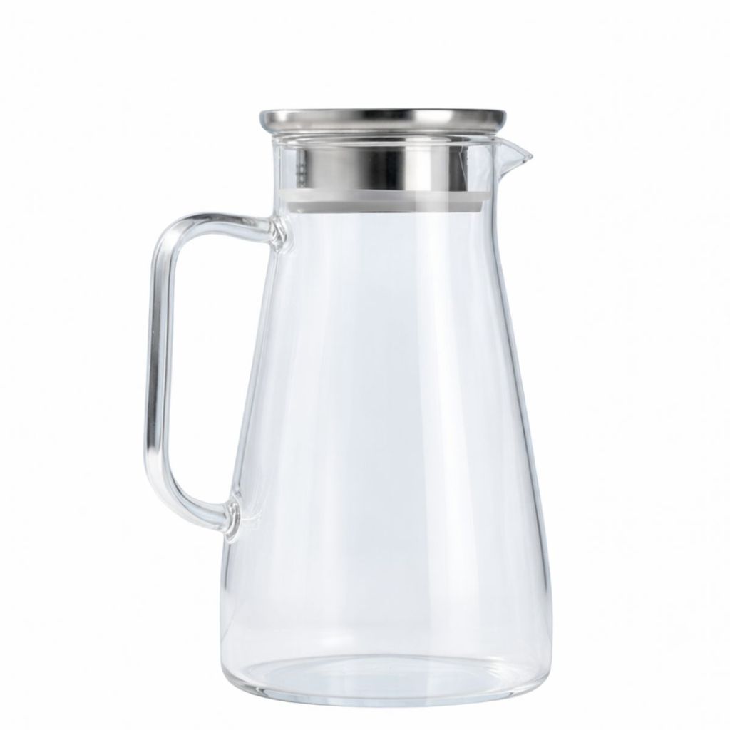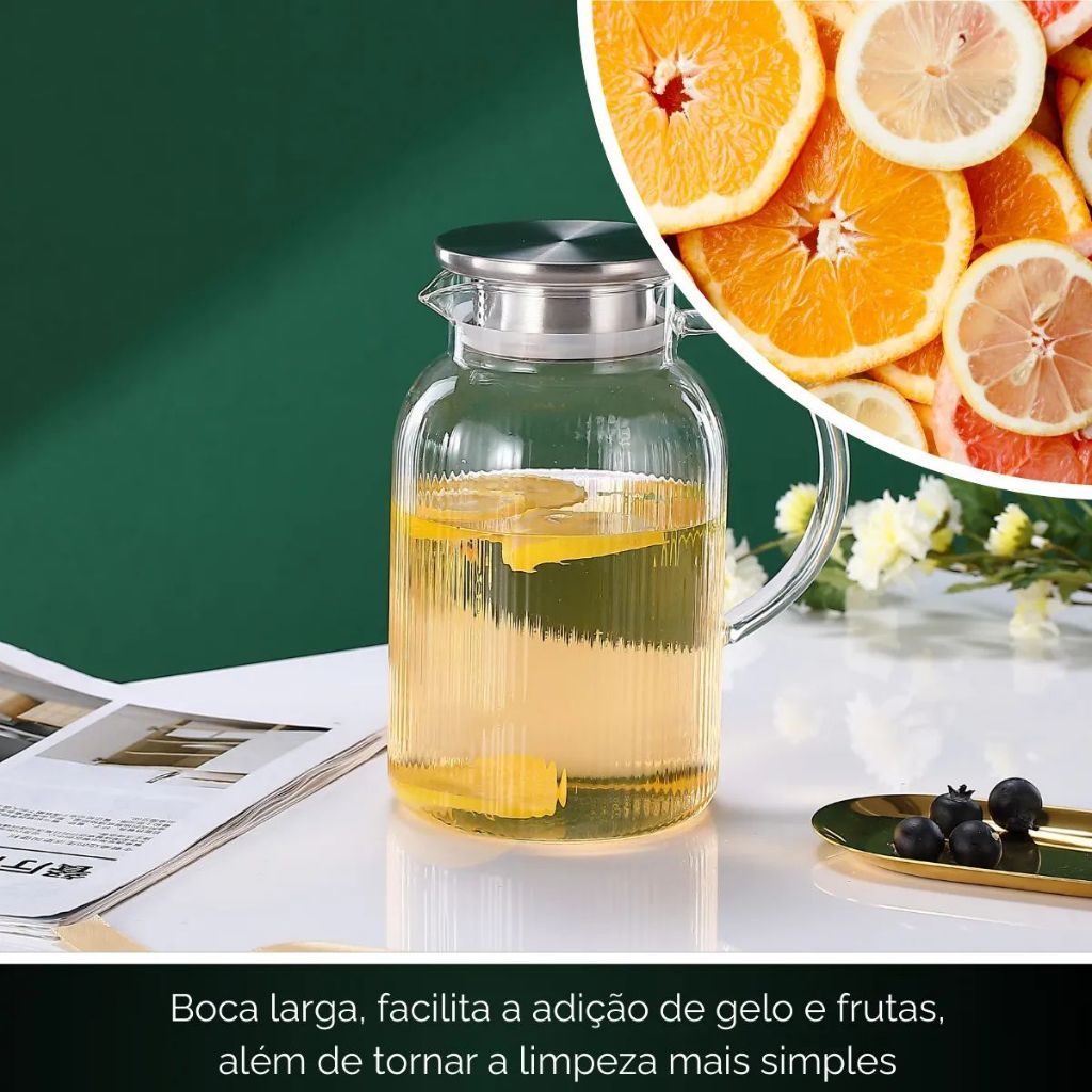 Jarra Vidro Borossilicato 1,5L Tampa de Aço Inox Hermética Coquetel Água Suco Bar Restaurante