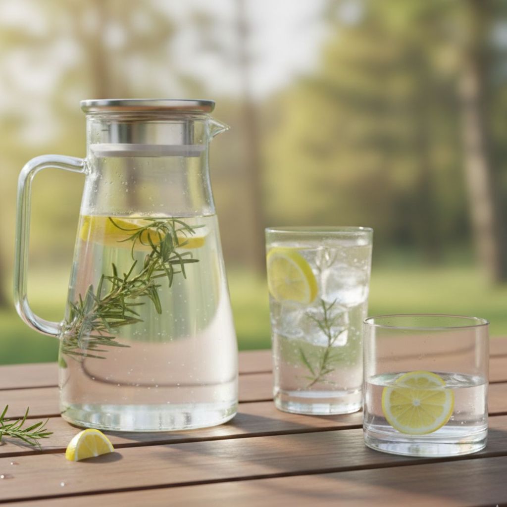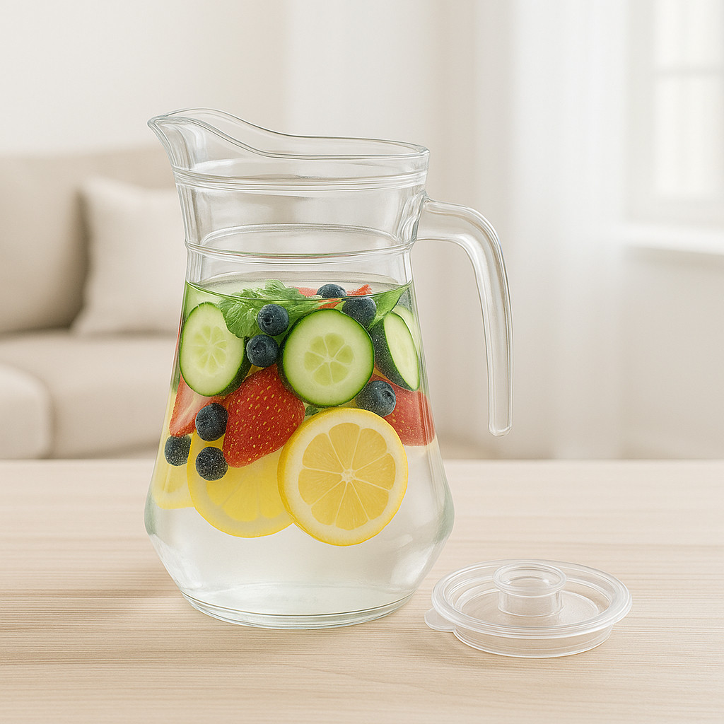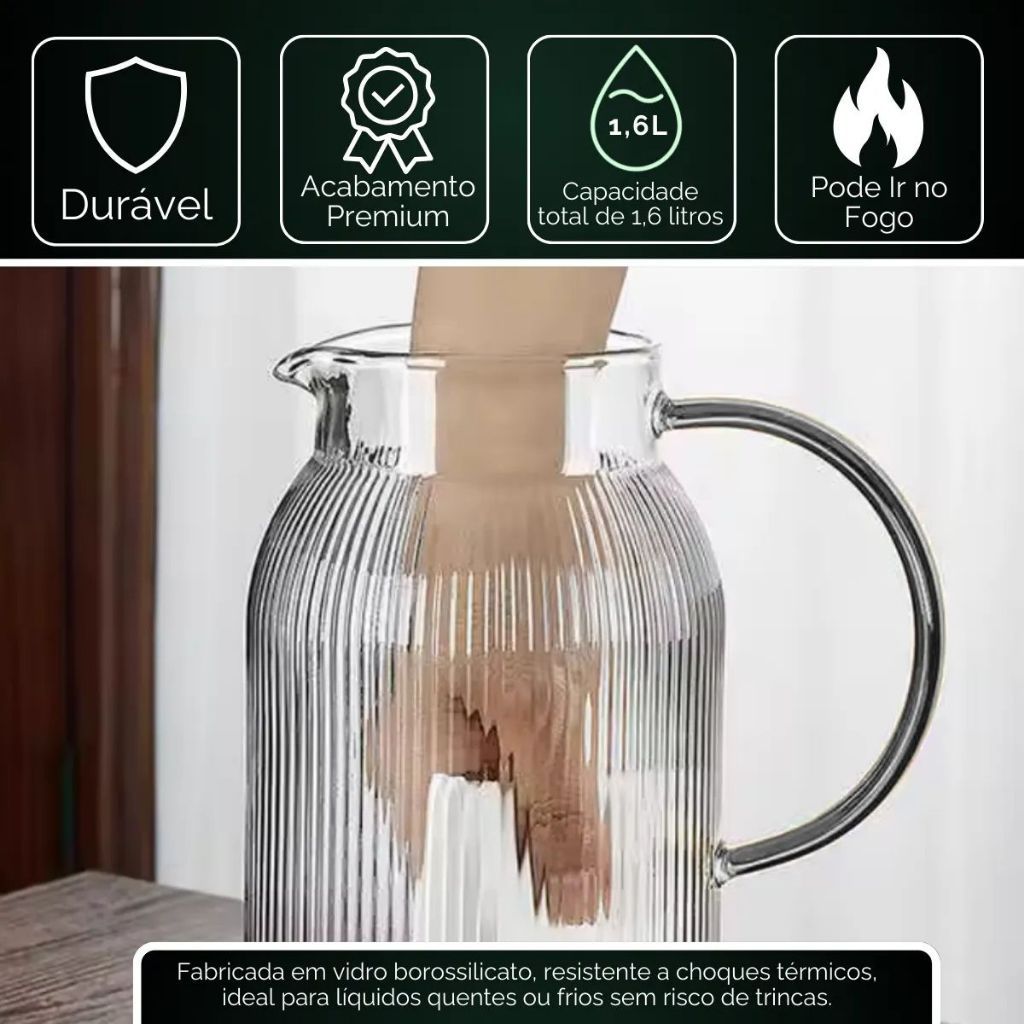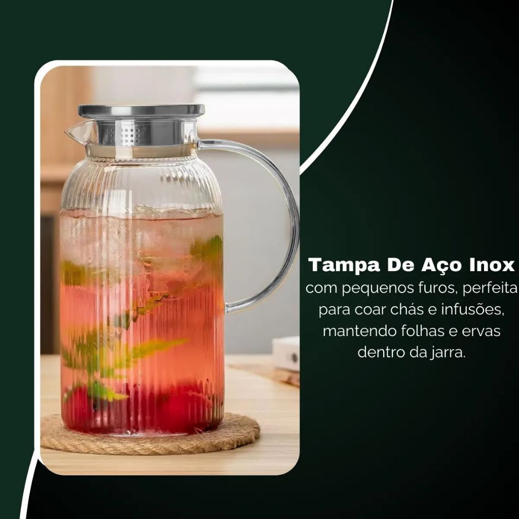 Jarra Vidro Borossilicato 1,5L Tampa de Aço Inox Hermética Coquetel Água Suco Bar Restaurante