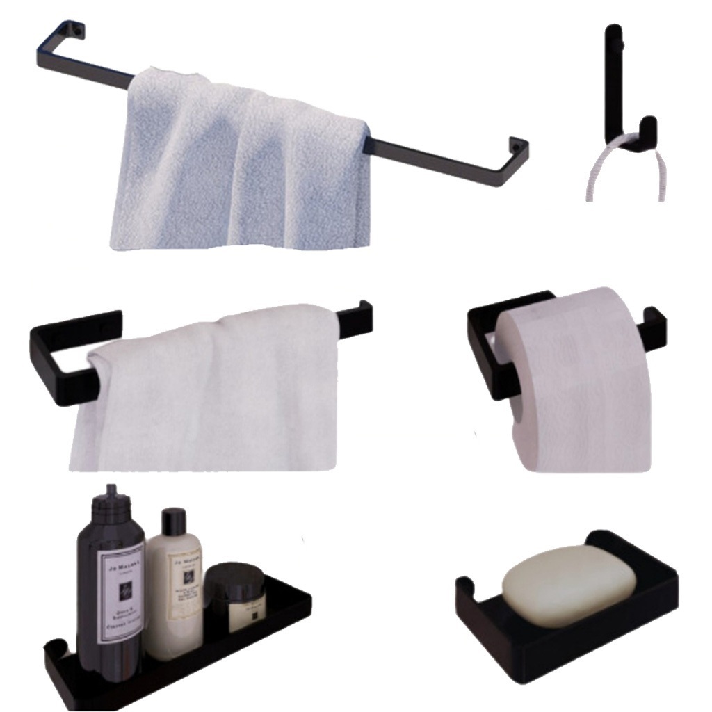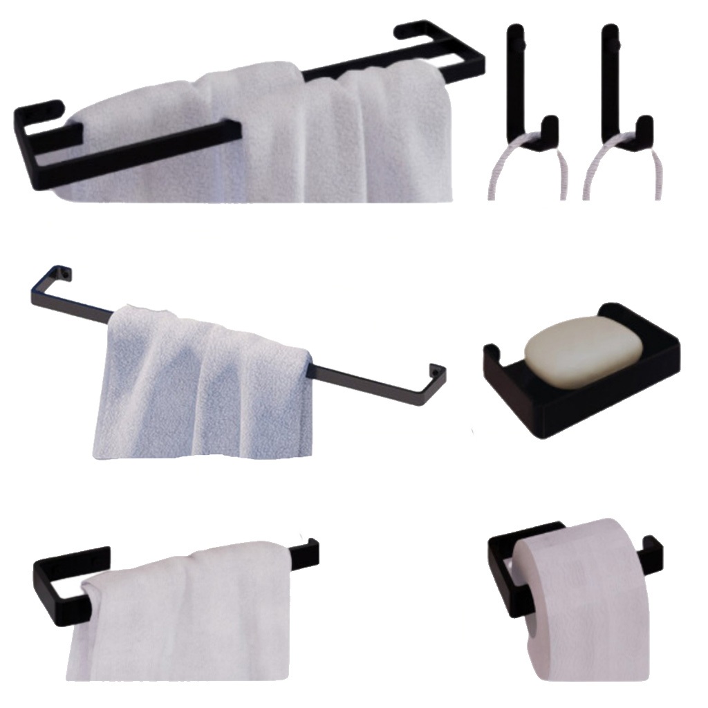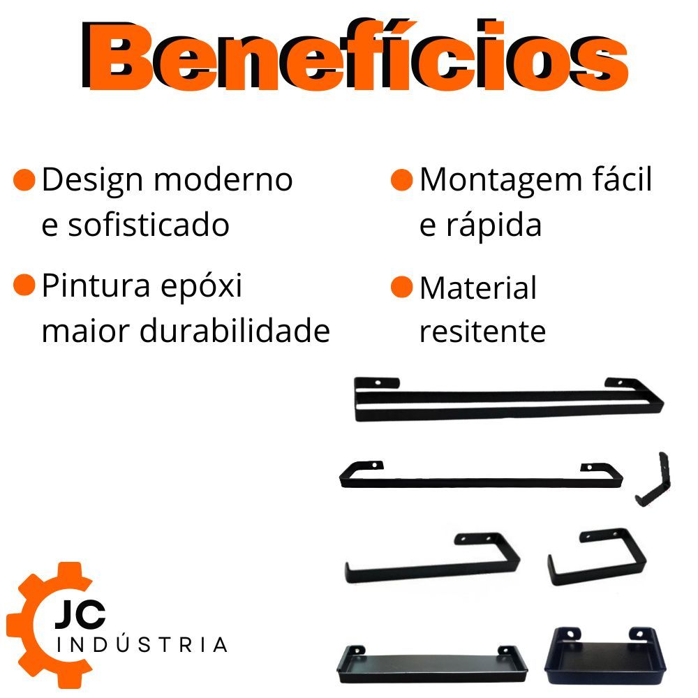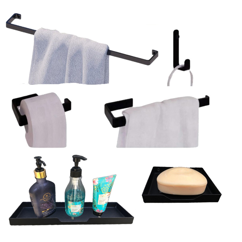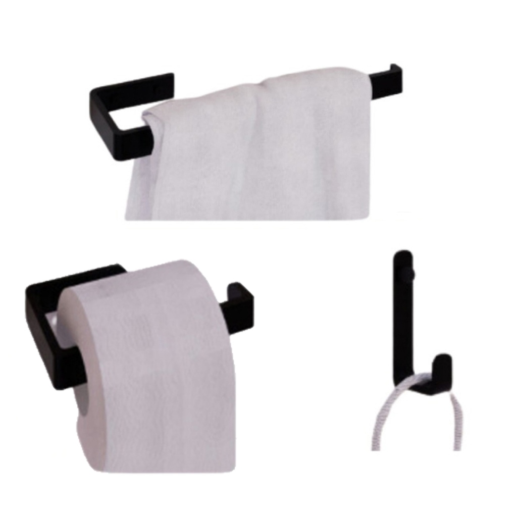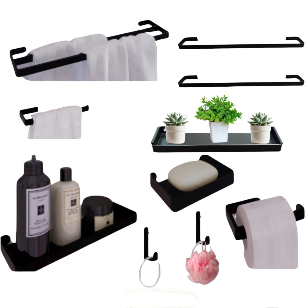 Novos Kit Acessórios Para Banheiro Preto Deluxe Saboneteira Porta Toalha Duplo Jc indústria