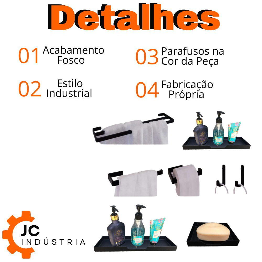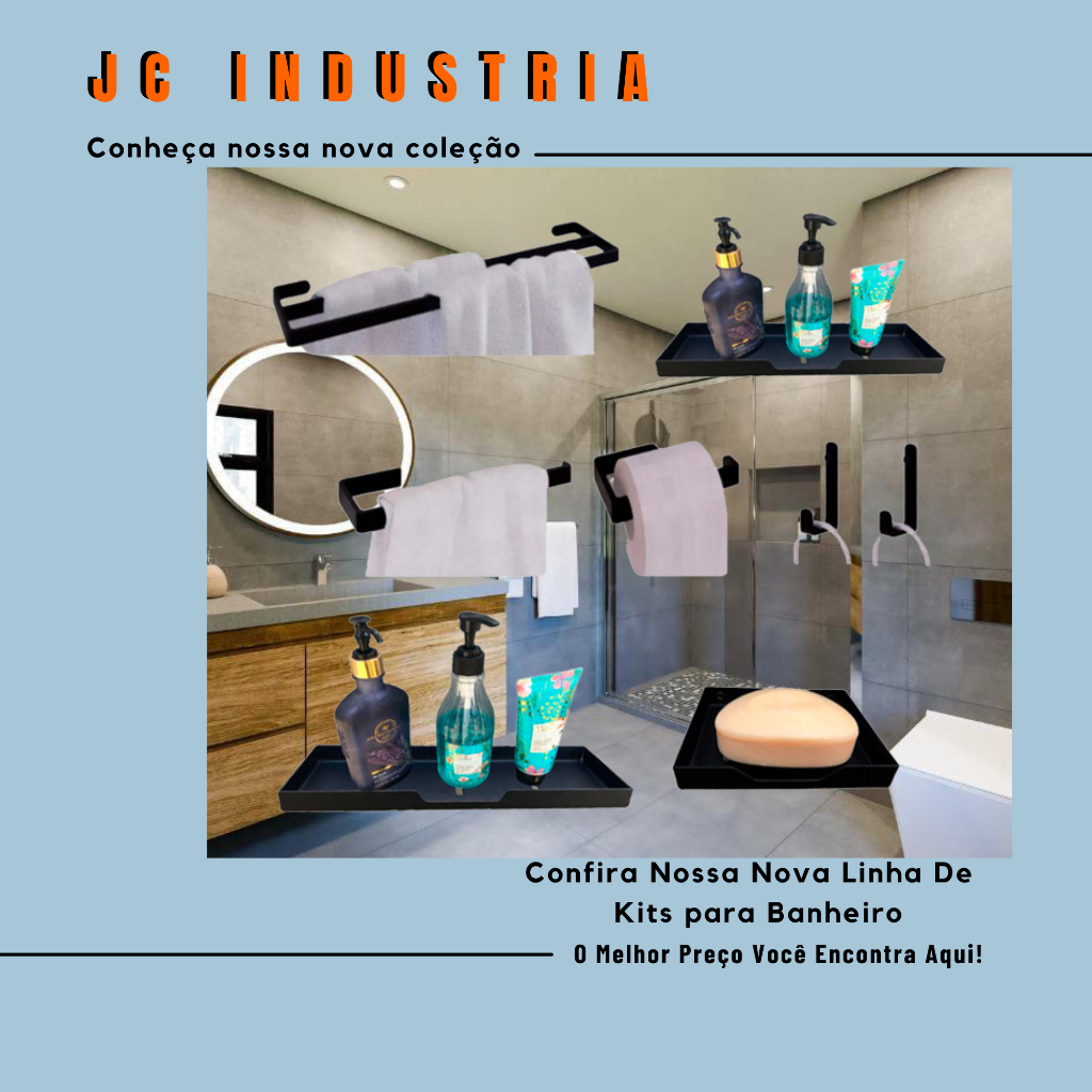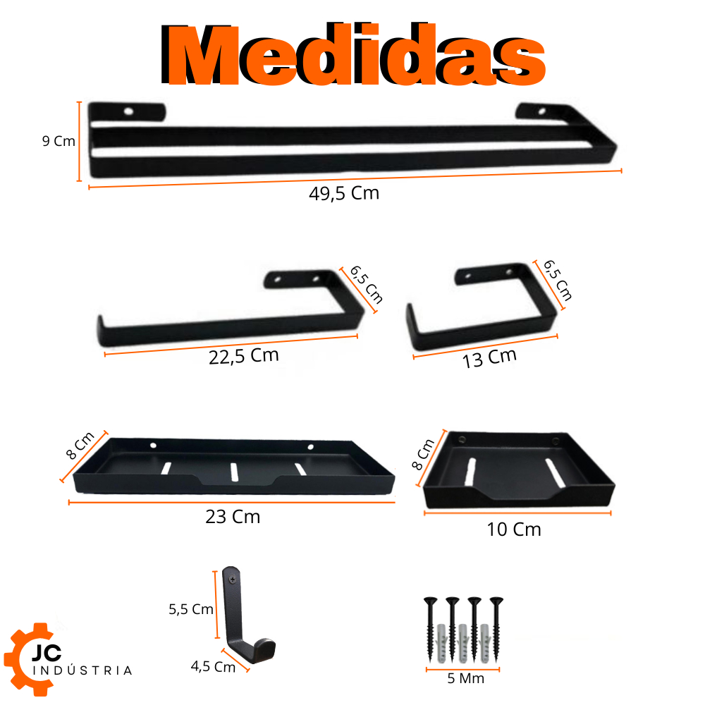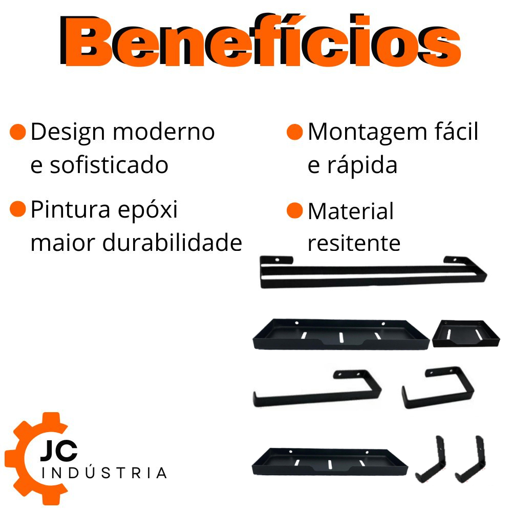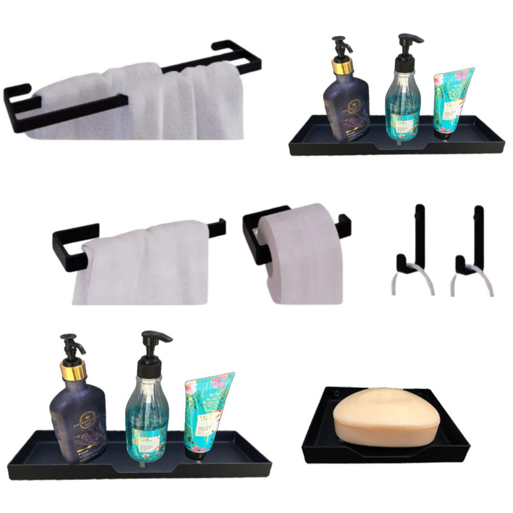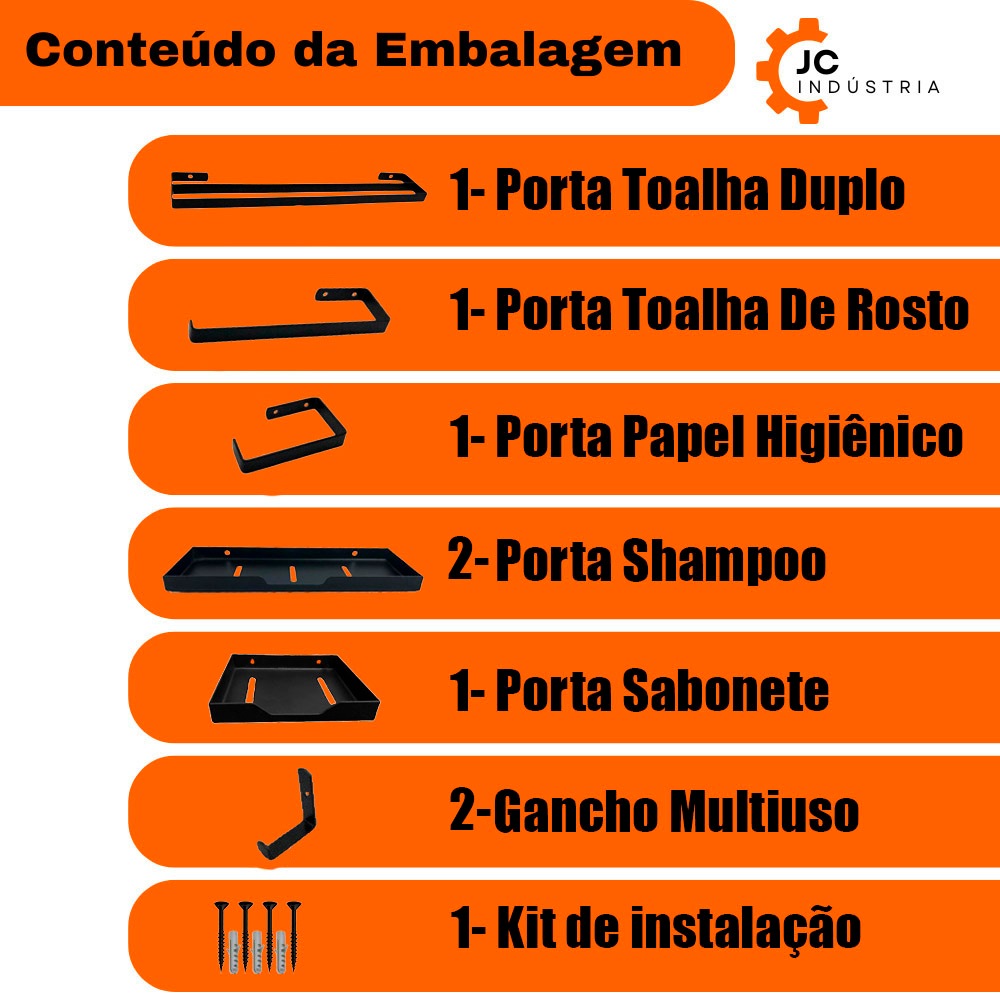 Kit Banheiro Completo 8 Peças Suporte Duplo Porta Shampoo e Sabonete