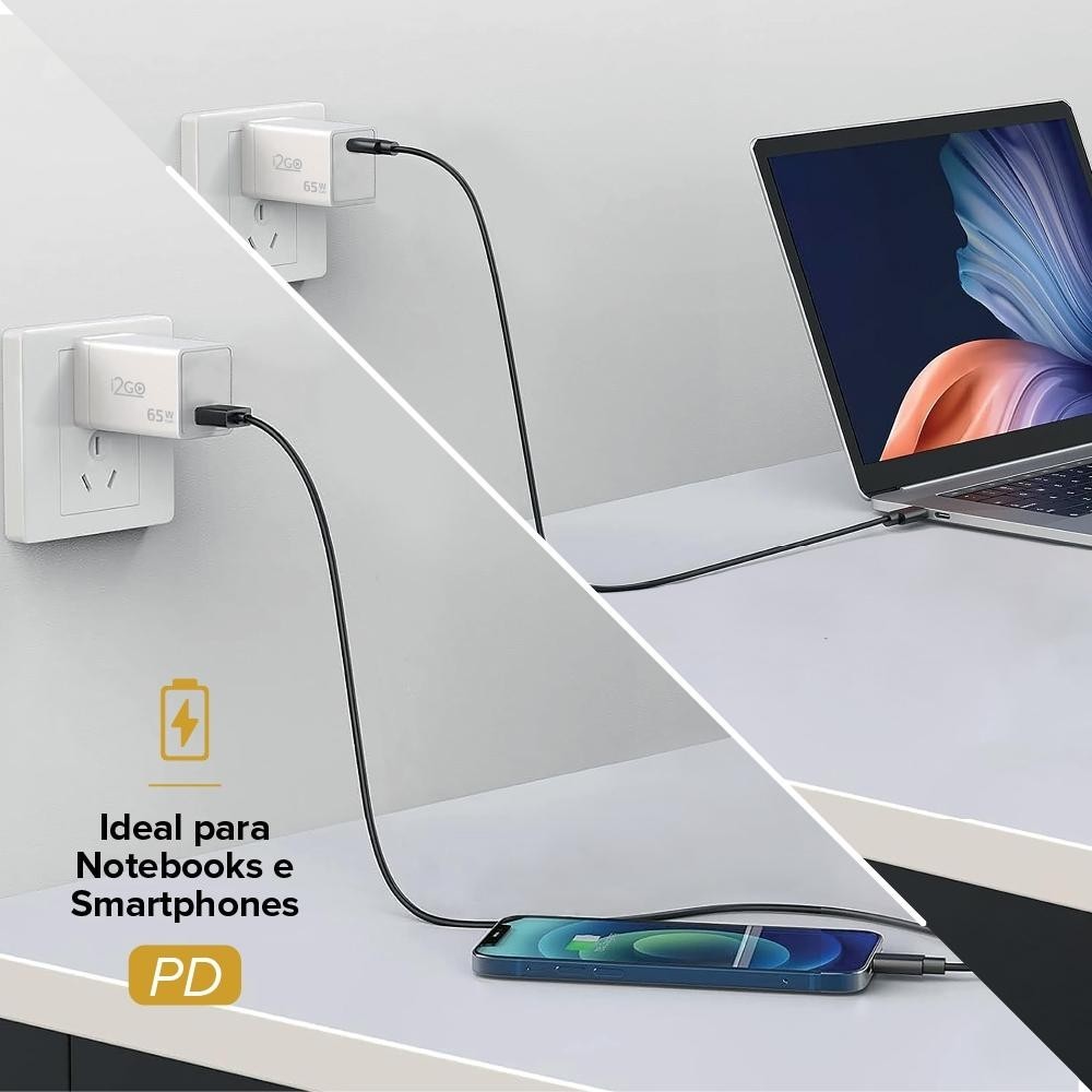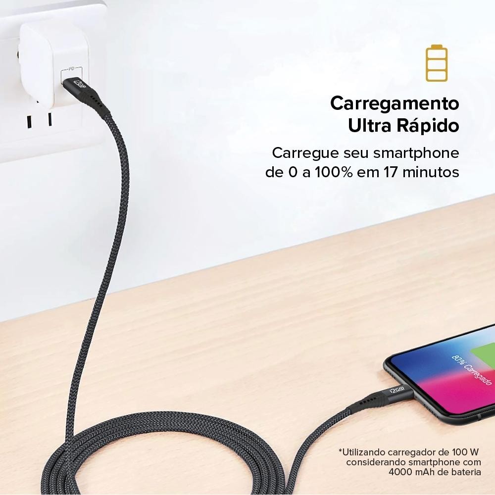 Cabo USB-C + USB-C i2GO 2m 5a 100w Nylon Trançado Preto