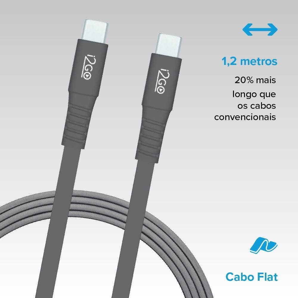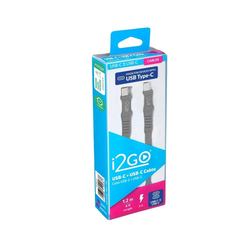 Cabo USB-C + USB-C i2GO 1,2m 3a Cinza