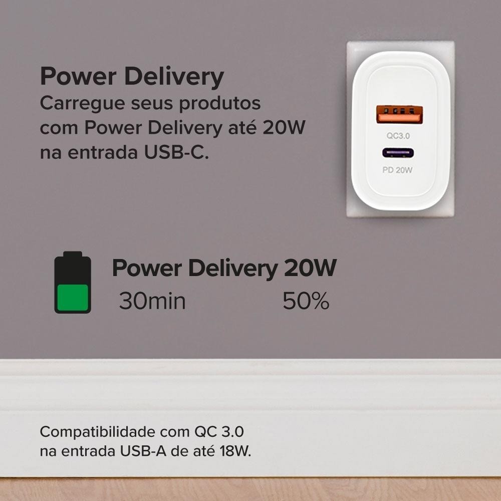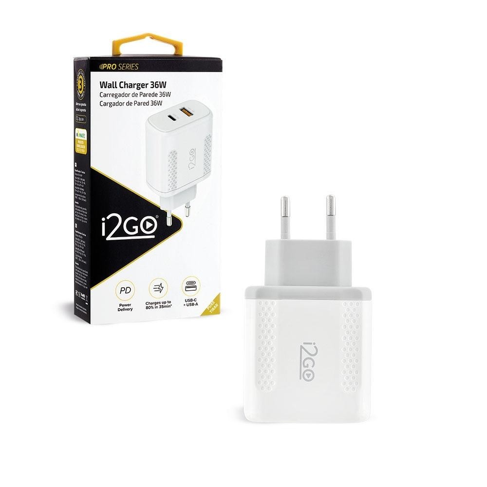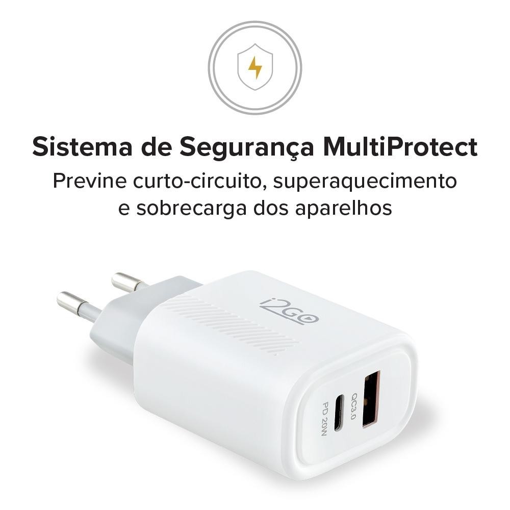 Carregador De Parede Turbo i2GO 1 USB-C 20w + 1 USB-A 18w