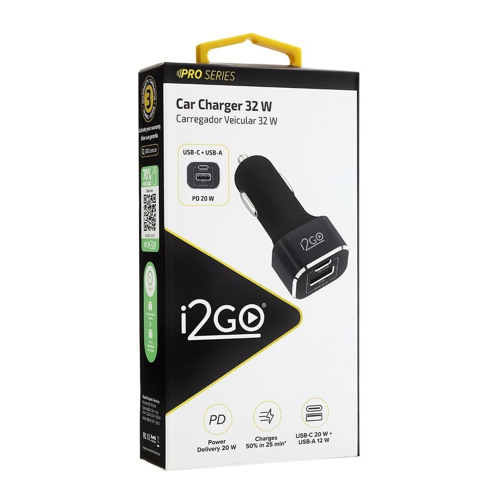 Carregador Veicular 2 Saídas i2GO 32w Power Delivery