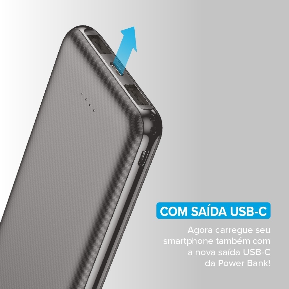 Carregador Portátil Power Bank i2GO 10000mah Cinza