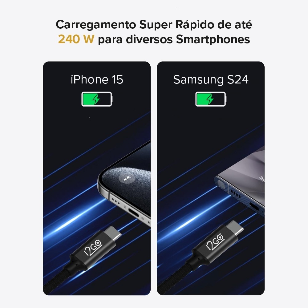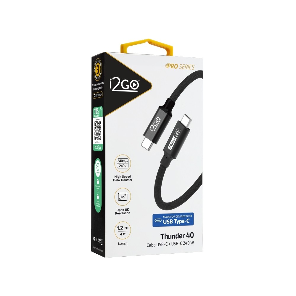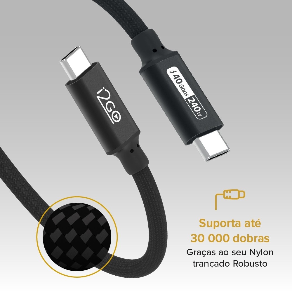 Cabo USB-C i2GO Thunder 40 High Speed 40Gbps 240W 8K/4K 1,2m - Preto
