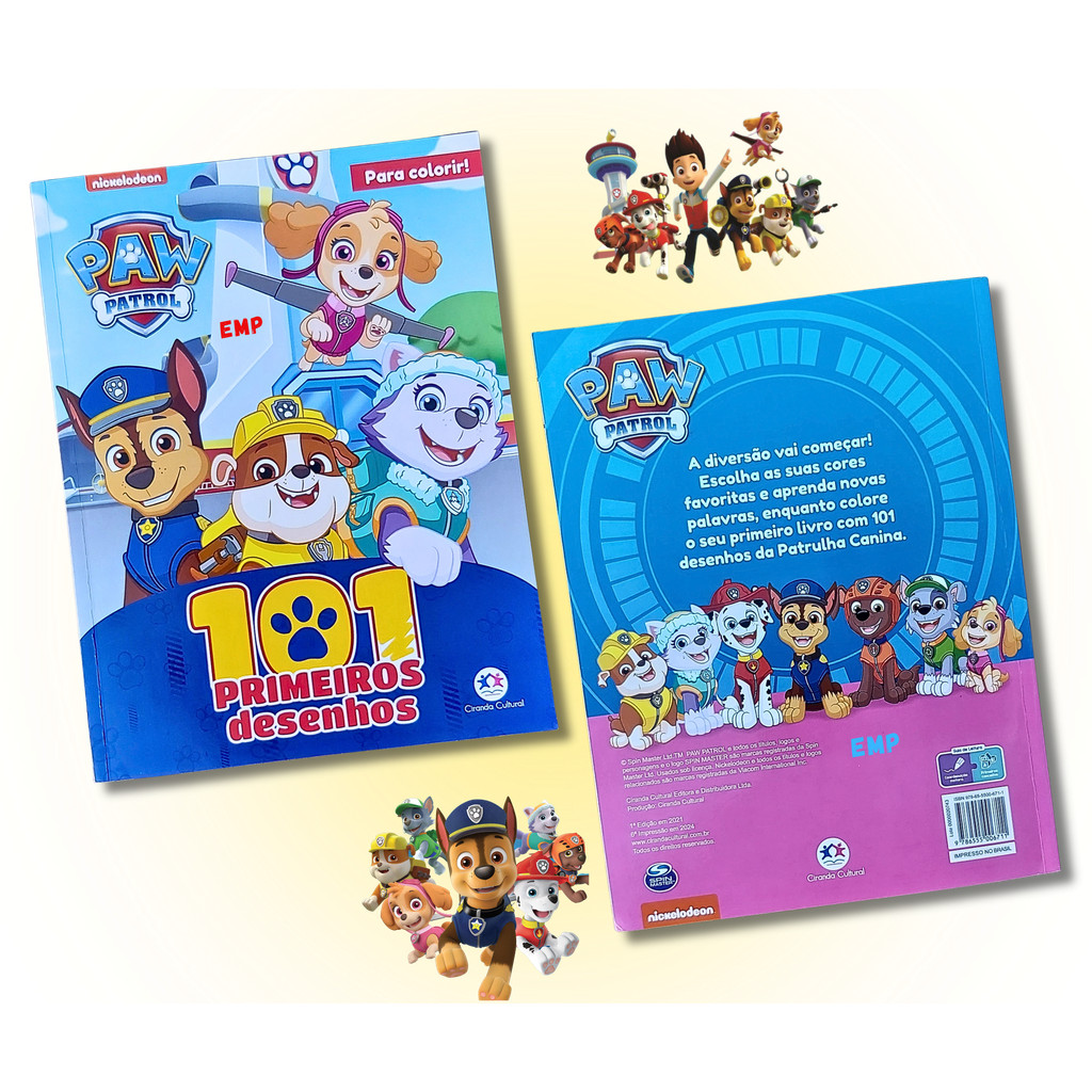 Livro Infantil de Colorir Patrulha Canina 101 Primeiros Desenhos com Giz de Cera