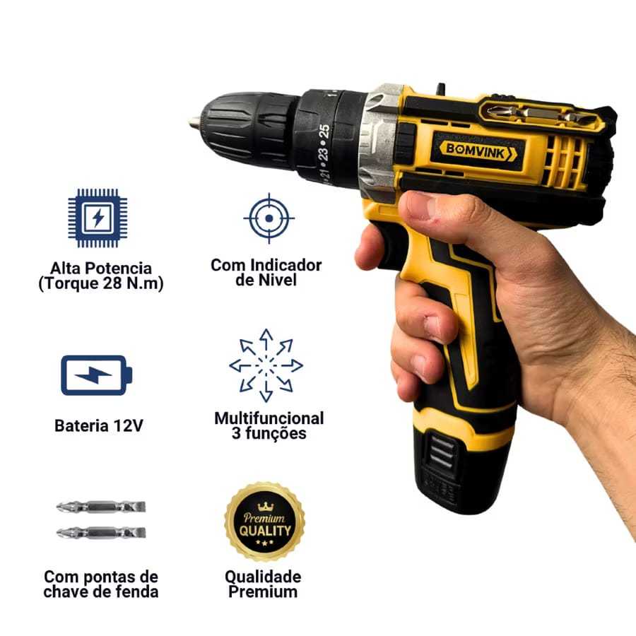 Furadeira Martelete Parafusadeira 12V 36v Profissional Bateria 28nm Multifuncional