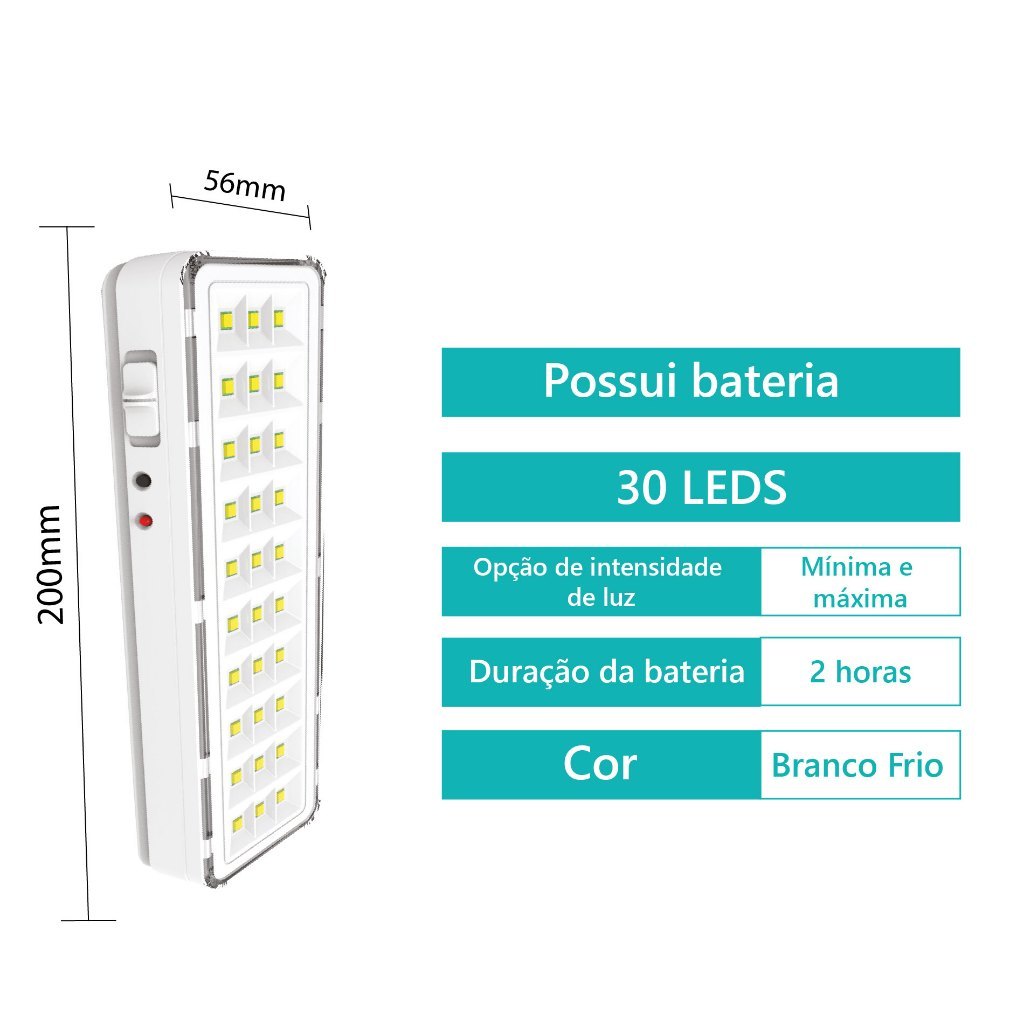 Luminária Emergência Lâmpada 30Leds Recarregável Bivolt Luz Branca