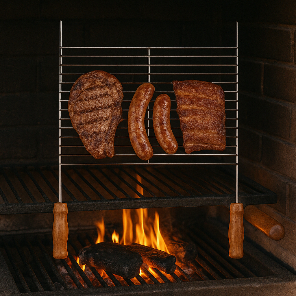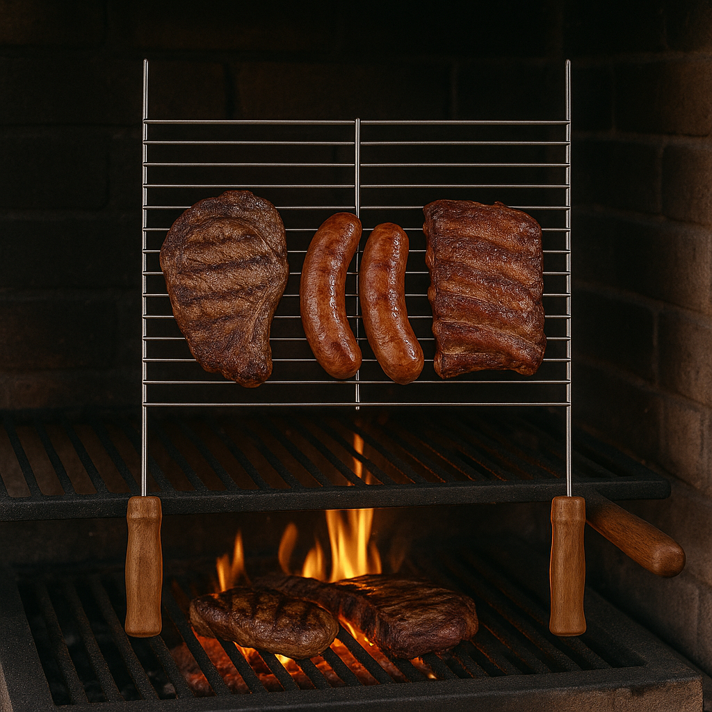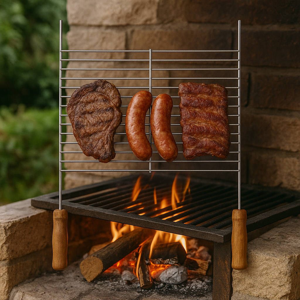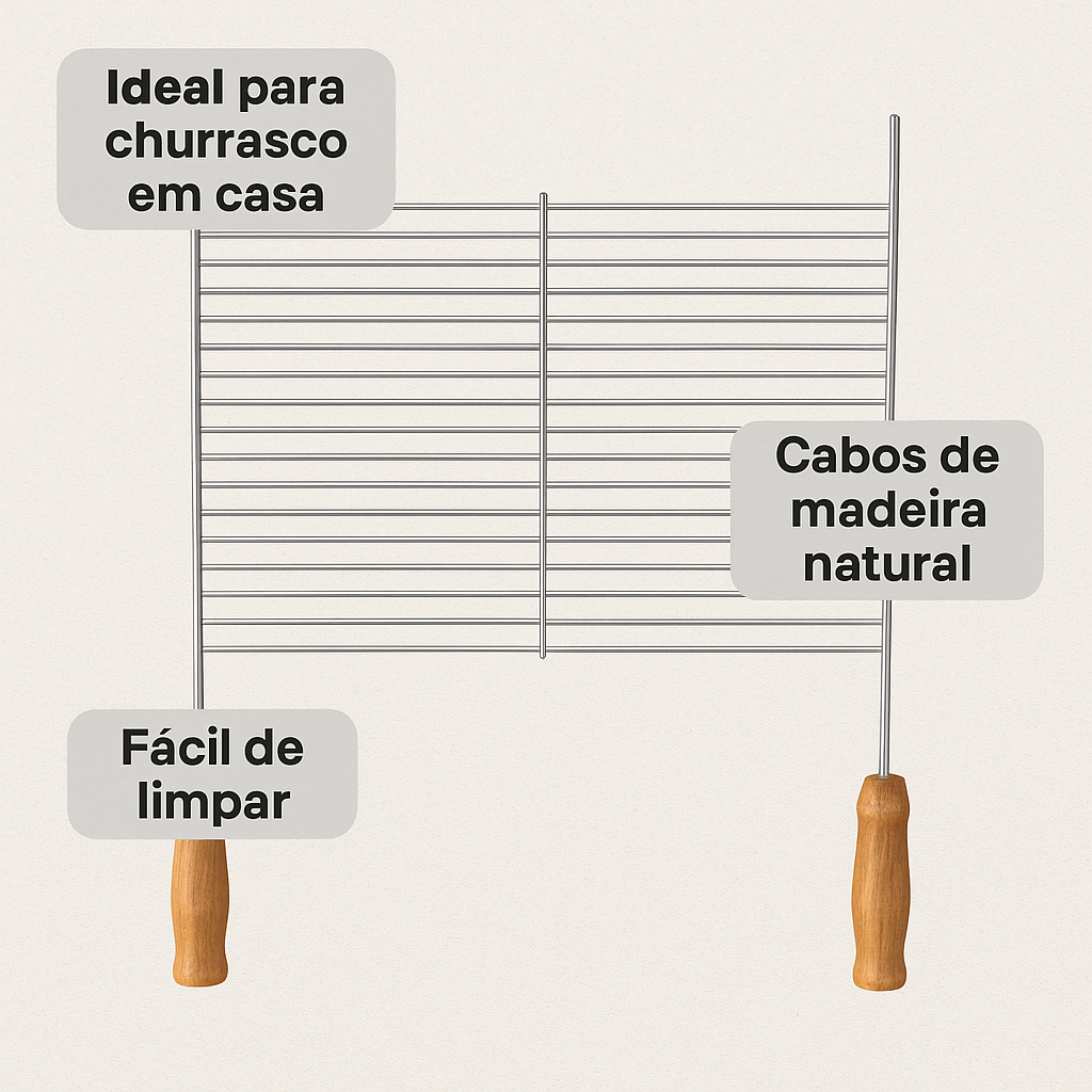 Grelha para Churrasco Aramada com Cabo de Madeira – Aço Cromado Durável