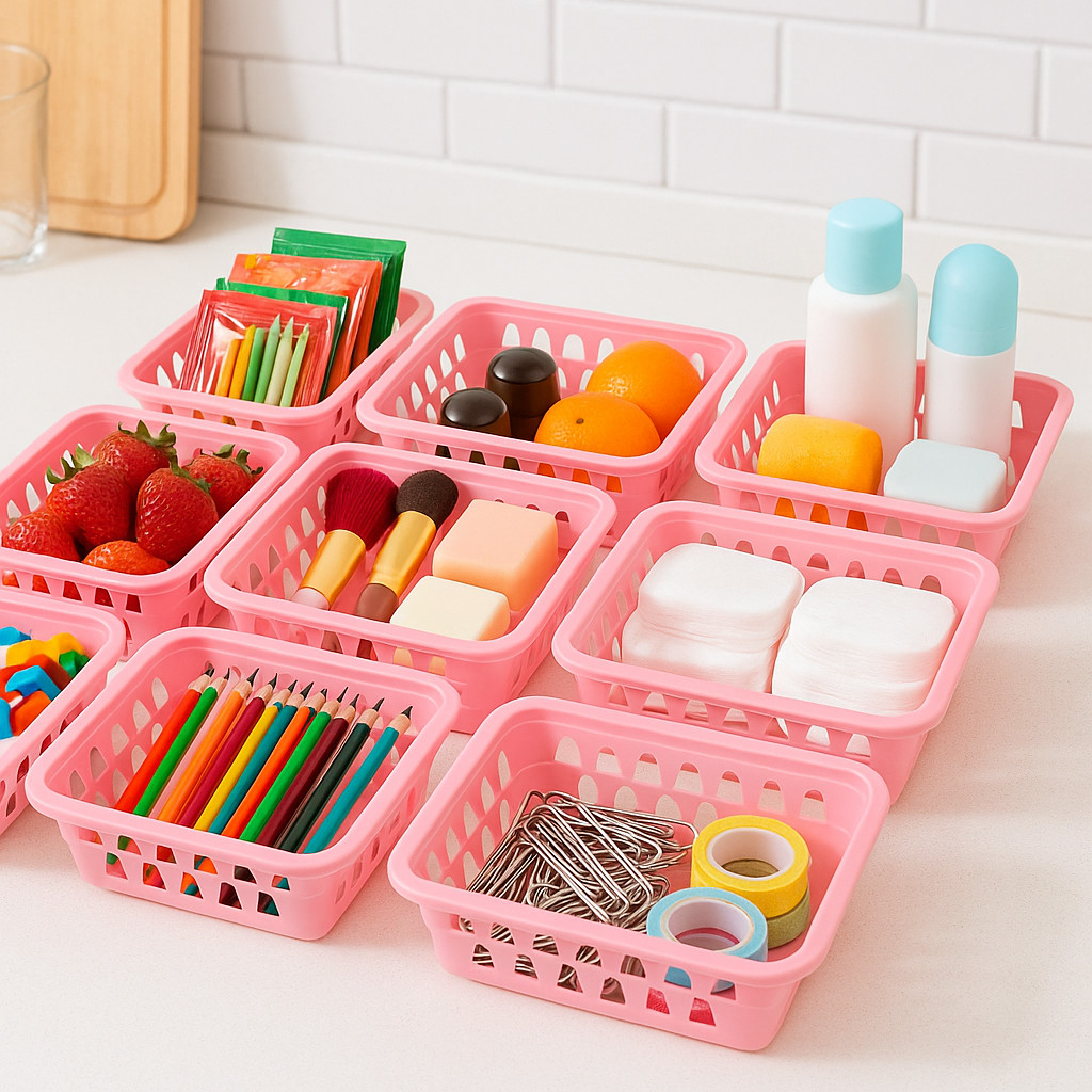 Kit 12 Cestos Organizador Multiuso Cestinho Gaveta Rosa Branco e Preto