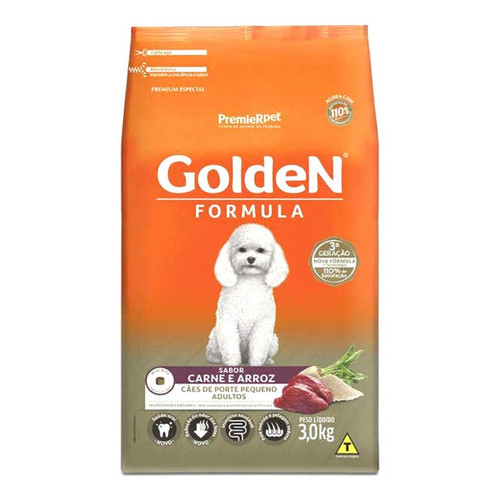 Ração Seca PremieR Pet Golden Formula Carne e Arroz para Cães Adultos de Raças Pequenas 3 Kg